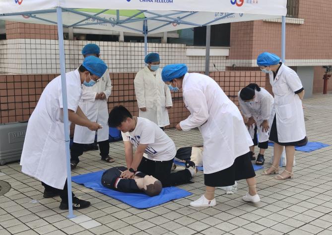 应急救护和防灾防汛演练由后勤产业集团组织开展。当天下午,在校医院医生的专业指导下,学校的红十字志愿者和部分学生代表一起体验模拟心肺复苏操作。参与的杨尚荣同学表示:“今天这个活动我学会了心肺复苏急救法,以后如果遇到这种情况的时候,我也会伸出援助之手。”