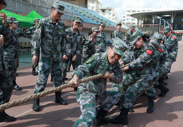 “向前!向前!向前!我们的队伍向太阳,脚踏着祖国的大地……”活动以铿锵有力的《中国人民解放军军歌》拉开序幕。尹航代表学校武装部向云南民族大学、西南林业大学的师生表示欢迎。她说,三年的疫情阻隔了学校之间面对面的交流和联系,但从未阻断兄弟院校学生组织之间互相支持的情谊和比学赶超的干劲。她表示,希望同学们在活动中能收获友谊、收获才干、收获在团队建设及能力提升方面好的经验做法,促进各学校国防后备连、国旗护卫队等军事类学生组织的建设发展,能够更好地服务师生、服务学校,成为校园中一抹最靓丽的迷彩风景线。钻珠塔庆代表此次到访的师生团队表达了对活动的期待,并预祝活动顺利开展。