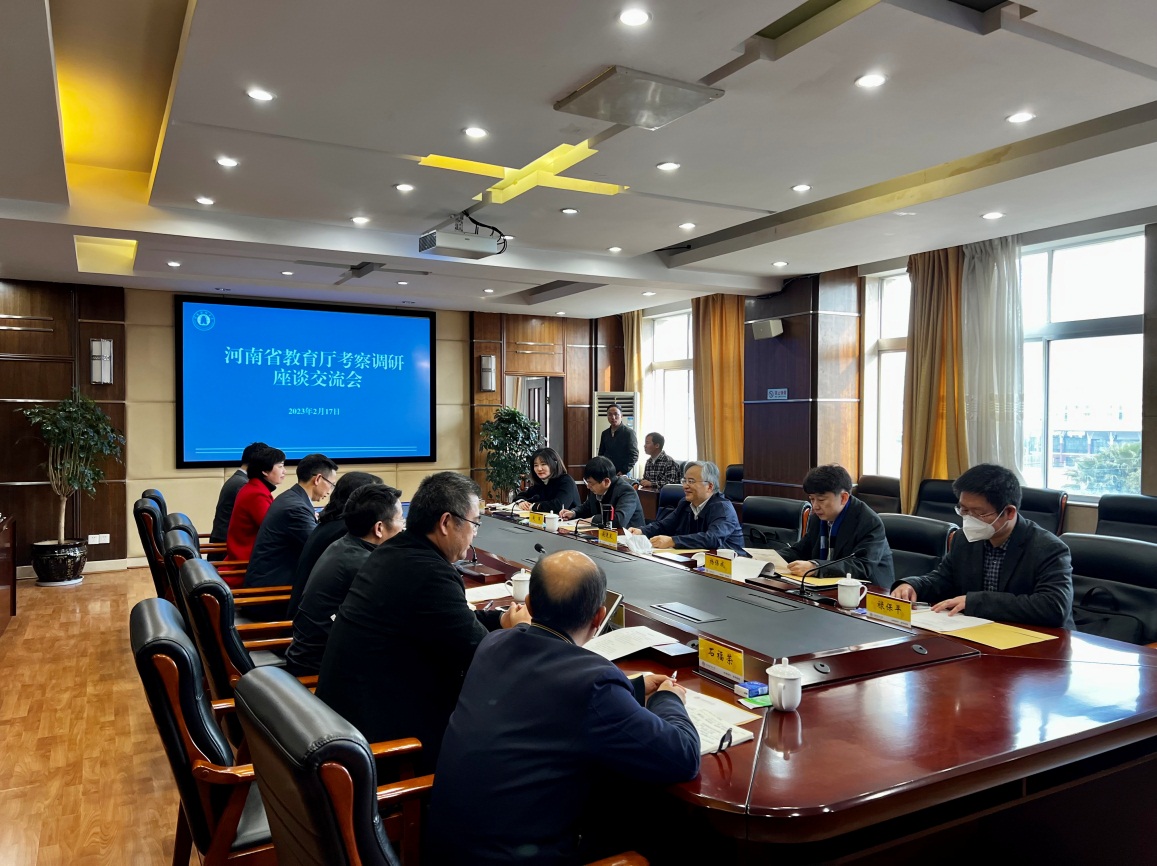 2月17日,河南省高等学校教育教学评估管理服务中心常务副主任、华北水利水电大学副校长施进发,河南省高等学校专业管理服务中心常务副主任、黄河科技学院副院长杨保成,河南省高等学校专业管理服务中心副主任、郑州大学教务处处长赵军,河南中医药大学教务处处长禄保平以及河南省高等学校专业管理服务中心副主任、河南师范大学教务处副处长王灵修等组成的河南省教育厅考察调研组一行5人到beat365开展专业综合评价、学分制综合改革调研交流,beat365党委委员、副校长旷锦云与调研组一行举行座谈交流。
