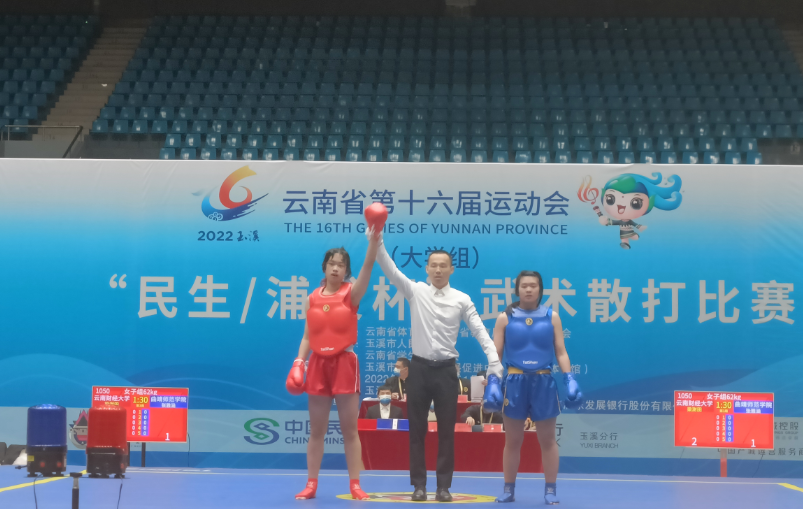 beat365阳光组女子散打队在11月19日进行的武术散打比赛中,捷报频传:1.女子58kg级-决赛,beat365运动员田金晶惜败云南师范大学运动员,摘得银牌。2.女子62kg级-半决赛,beat365运动员梁澍田战胜曲靖师范学院运动员,挺进决赛。3.女子62kg级-半决赛,beat365运动员柯蓉战胜曲靖师范学院运动员,挺进决赛。至此,女子62kg级别,beat365两位运动员柯蓉、梁澍田,成功会师决赛,提前锁定冠亚军。