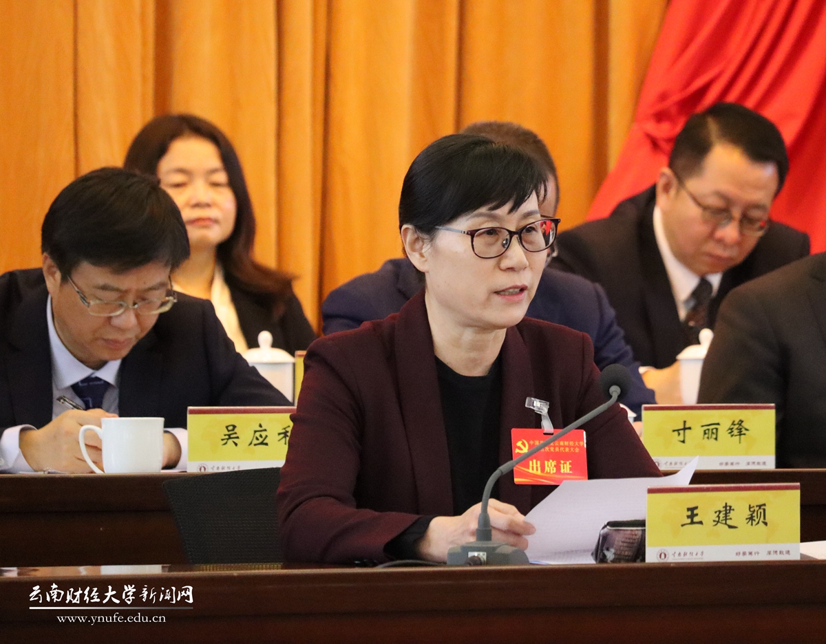 王建颖介绍了党代会的情况,对取得的成效进行了总结。她用“做敢于梦想的云财人”“做拼搏奋进的云财人”“做善作善成的云财人”与所有代表共勉,就贯彻落实党代会精神提出三点要求:一是要结合习近平新时代中国特色社会主义思想和党的二十大精神宣讲,面向师生广泛宣传学校第五次党代会精神,让学校未来五年的奋斗目标、行动纲领和具体举措,在师生中入脑入心、形成共识,汇聚起共促学校发展的强大合力;二是要对党代会报告中提出的各项任务进行全面系统的梳理,将“1186”战略任务细化分解为一个个“子项目”“子计划”“子方案”,明确各项任务的责任人、责任部门、完成时限,形成完整的路线图、作战图,强化跟进,定期督导,决不能让“1186”战略任务落空为一句口号,而是要转化成为具体的行动、落实的举措、显著的成效;三是要遵循习近平总书记强调的“空谈误国、实干兴邦”要求,各级干部必须大力弘扬实干精神,真抓实干、善作善成,真正把好事办好、把实事办实,把更多时间和精力放在“1186”的具体落实上,多讲主观、少讲客观,多想办法、少讲困难,全力以赴确保党代会提出的各项目标任务如期顺利实现。