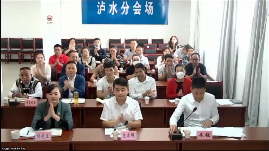 10月28日下午,学校与泸水市以线上会议形式联合举行2022年教育部“乡村振兴帮扶县(市)教师国家通用语言文字能力提升在线示范培训”项目启动仪式。学校副校长旷锦云,泸水市委常委、市委办公室主任范志辉,国家乡村振兴局信息中心系统处副处长、泸水市委常委、市人民政府副市长朱强,泸水市教育党工委书记、教育体育局局长杨光兰等出席。