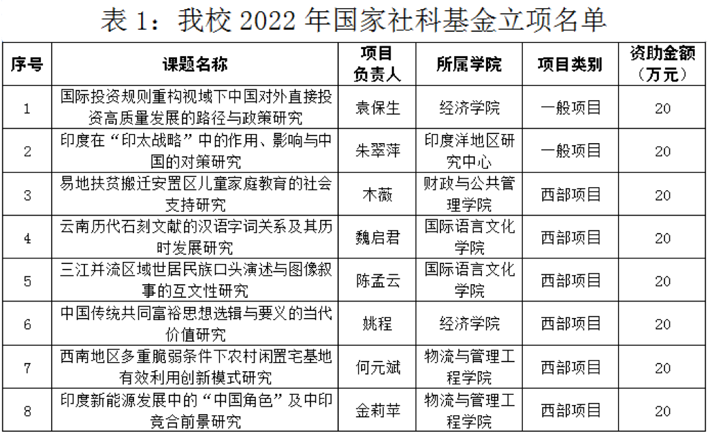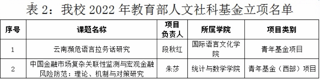 近日,全国哲学社会科学办公室、教育部社科司下达了2022年国家社科基金、教育部人文社科基金立项名单,beat365共获10项课题立项资助。其中,国家社科基金立项8项 (一般项目2项、西部项目6项),资助经费160万元;教育部人文社科基金立项2项。在此,向获得立项的老师表示衷心祝贺,希望全校老师再接再厉,在2023年各类课题申报中再创佳绩。具体名单如下: