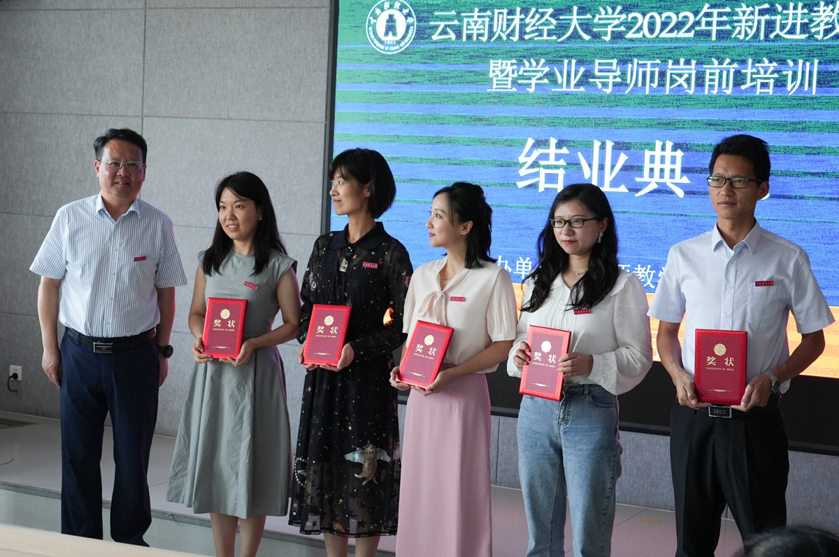党委副书记谢昌浩在结业典礼上以“融入、成长”两点建议出发真诚勉励新教师,希望大家尽快融入财大大家庭,尽快适应教师工作,尽快融入学生,把自身成长和学校发展相融合,做学生的引路人,做学校的建设者。