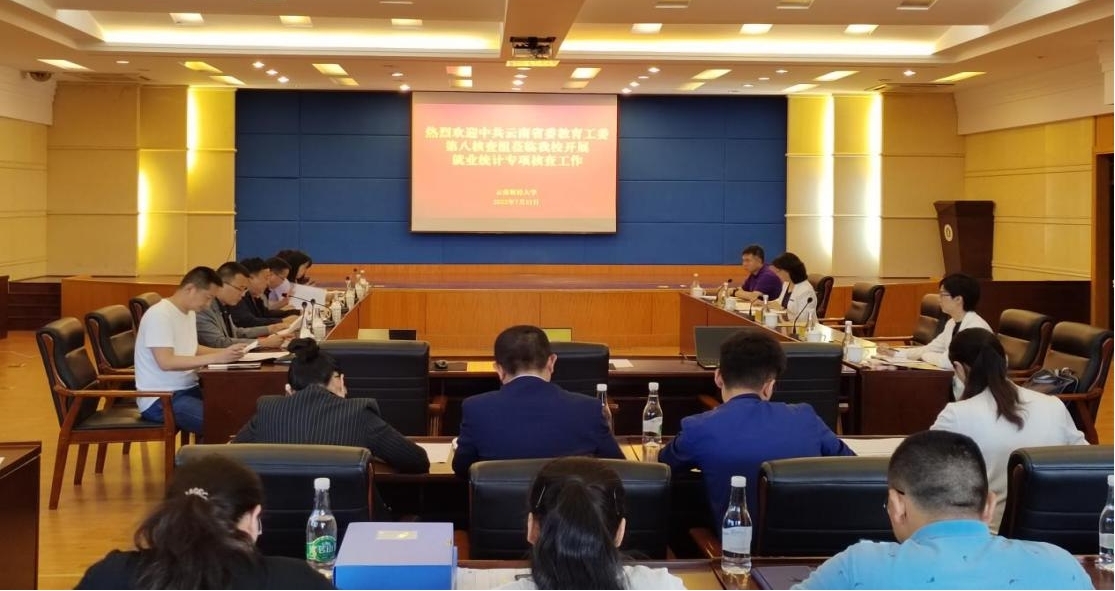 为贯彻落实教育部相关要求,确保毕业生就业数据真实准确,根据《中共云南省委教育工委办公室关于开展2022届高校毕业生就业统计专项核查工作的通知》相关安排,7月21日上午,由云南省教育厅副厅长张春骅带队,云南民族大学就业中心主任陈名红、昆明城市学院就业中心主任徐文渊、昆明医科大学海源学院就业中心副主任杨娴娴、省发展规划处一级主任科员朱学良、省委教育工委学生工作部干部余亭蓉等一行六人组成的工作组,作为云南省高校毕业生就业统计专项核查工作组第八组对beat3652022届毕业生就业数据进行核查。学校党委书记王建颖、副校长旷锦云出席核查工作会。