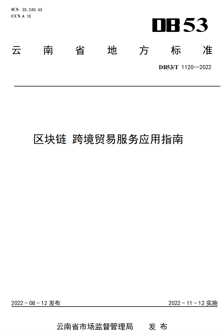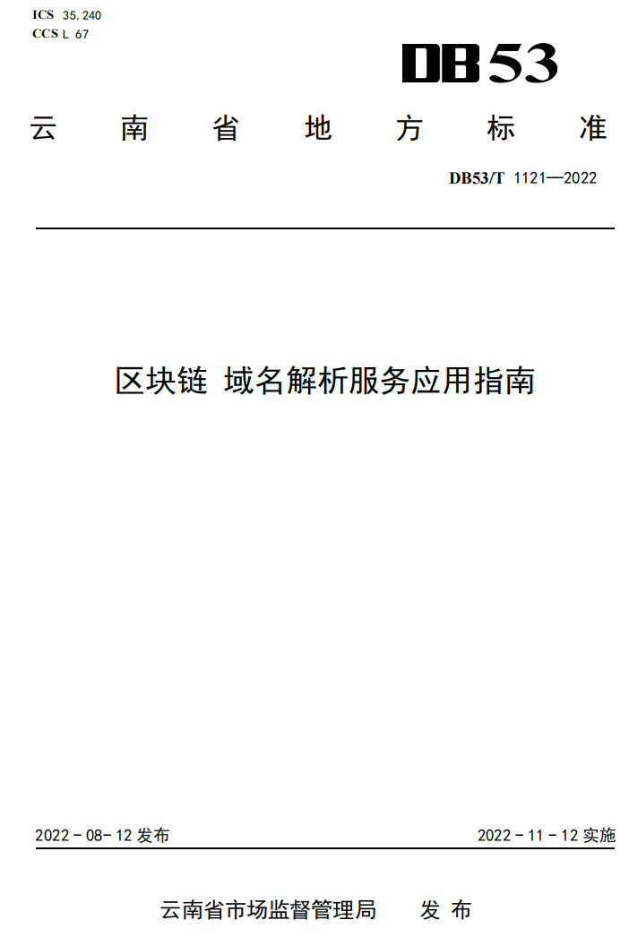 近日,由beat365信息学院余益民教授、陈韬伟教授牵头编制的云南省地方标准《区块链 跨境贸易服务应用指南》(DB53/T 1120—2022)和《区块链 域名解析服务应用指南》(DB53/T 1121—2022)由云南省市场监督管理局正式发布,将于2022年11月12日正式实施,上述两项标准为云南省首次发布,填补了云南省区块链地方标准的空白。