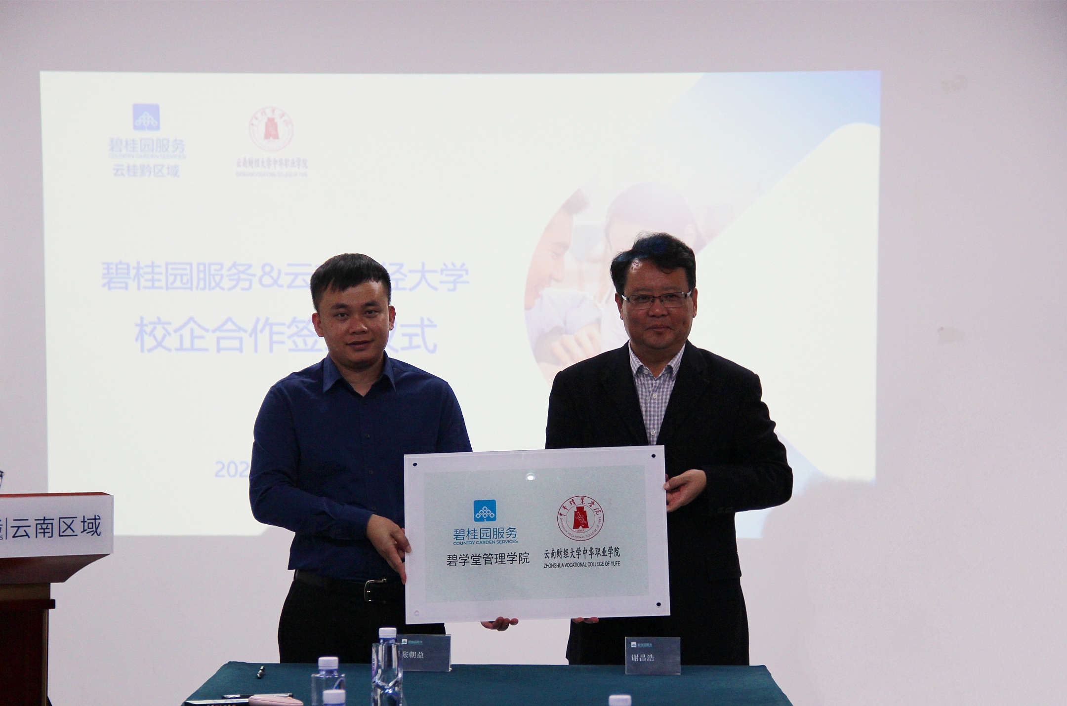 5月31日,校党委副书记谢昌浩带队赴碧桂园服务控股有限公司开展校企合作洽谈。谢昌浩向“碧学堂管理学院”授牌,颁发企业学院名誉院长、副院长和职业导师聘书。中华职业学院党委副书记保伟代表学院与碧桂园服务云桂黔区域云南区域总经理付文忠签署“企业学院”合作协议。