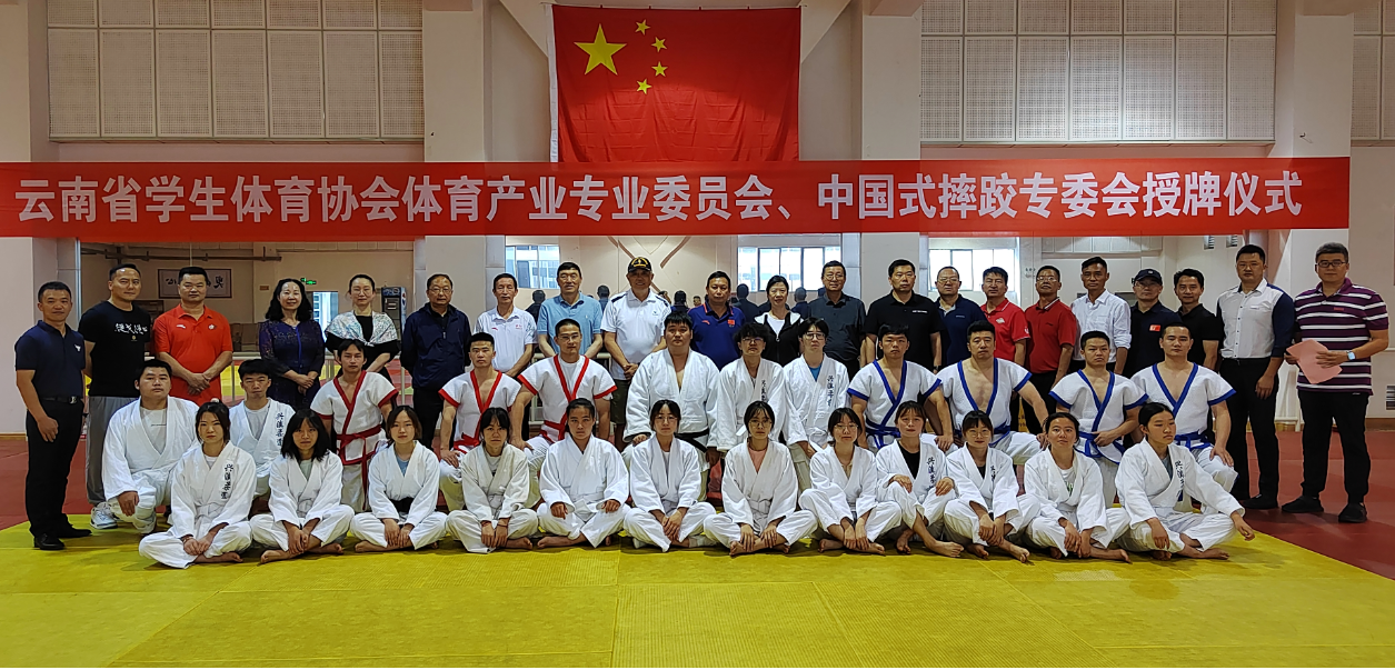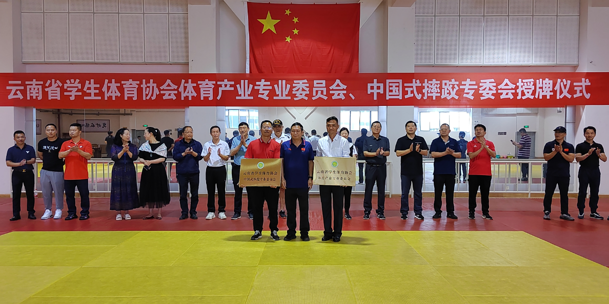6月20日下午,云南省学生体育协会体育产业、中国式摔跤专业委员会成立仪式在beat365举行。云南省教育厅、云南省体育局等相关领导、嘉宾以及各高校体育学院、中小学校长代表参加活动。云南省教育厅体卫艺处处长徐忠祥分别为学校和专委会主任朱海营授牌匾,颁发聘书。