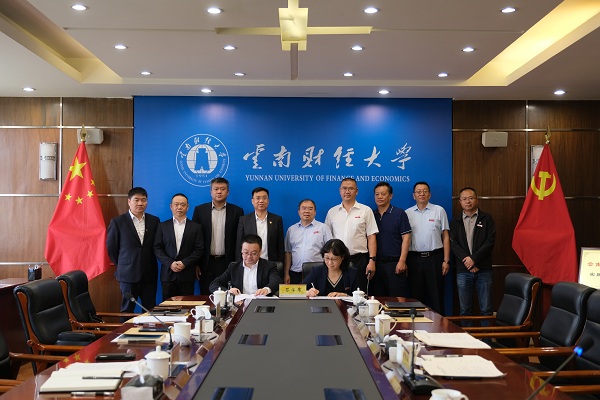 6月28日上午,中国民生银行股份有限公司昆明分行党委书记、行长李景欣带队到学校举行交流座谈。学校党委委员、副校长旷锦云代表学校与中国民生银行股份有限公司昆明分行党委委员、副行长何军签署战略合作框架协议,并与李景欣一起共同为中国民生银行股份有限公司昆明分行“实践教学基地”揭牌。