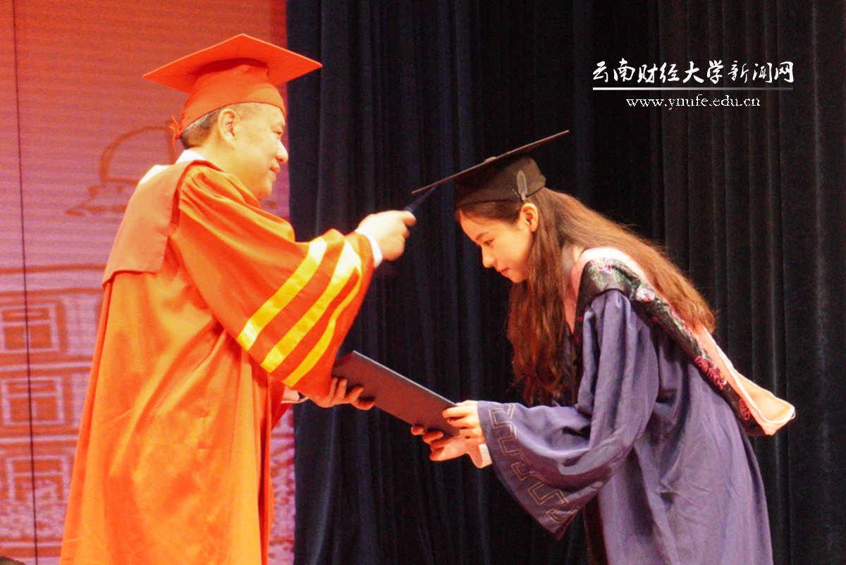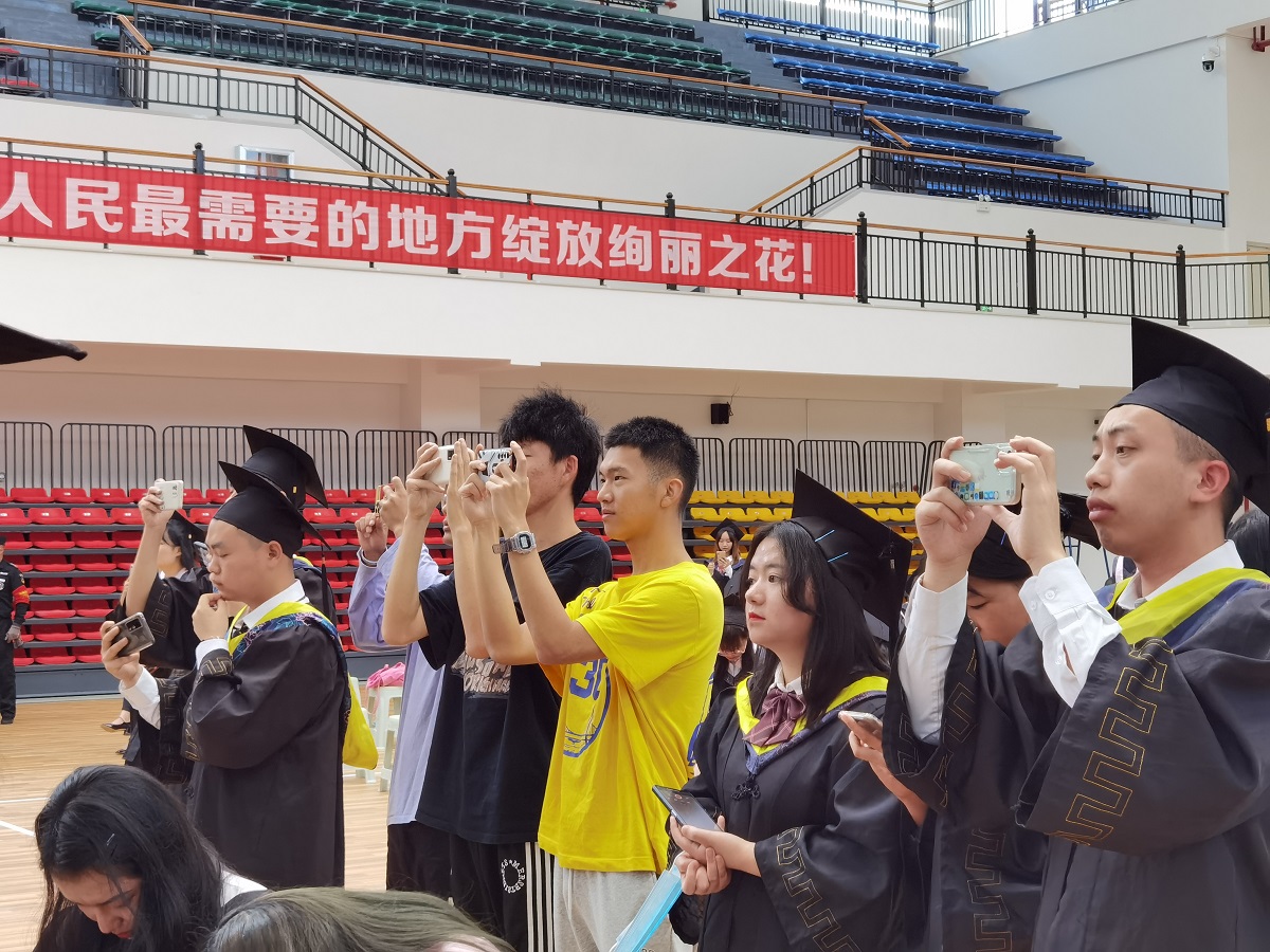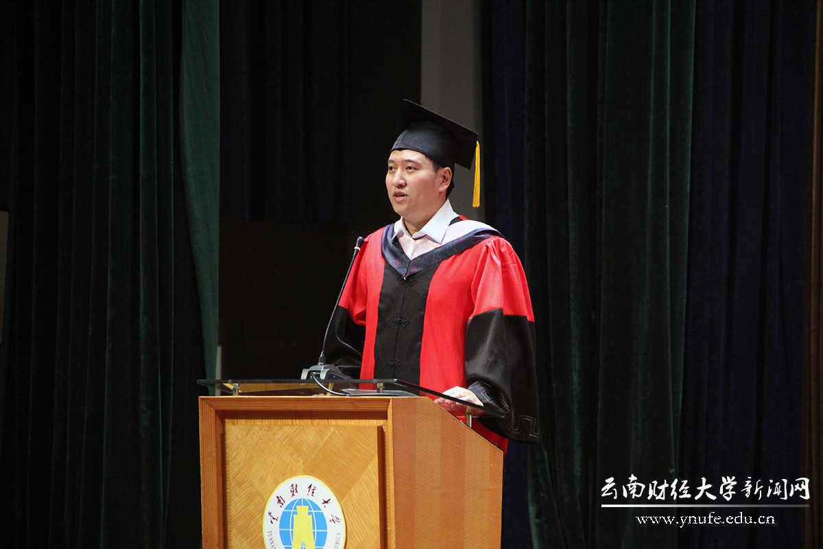 “校园留下了大家坚持的执着和拼搏的身影,但留不住奔向前程的步伐。”来自信息学院的教师代表杨明老师希望同学们始终要牢记“云财学子”共同的身份,因为“无论云彩身在何方,天空始终是它的归宿。”