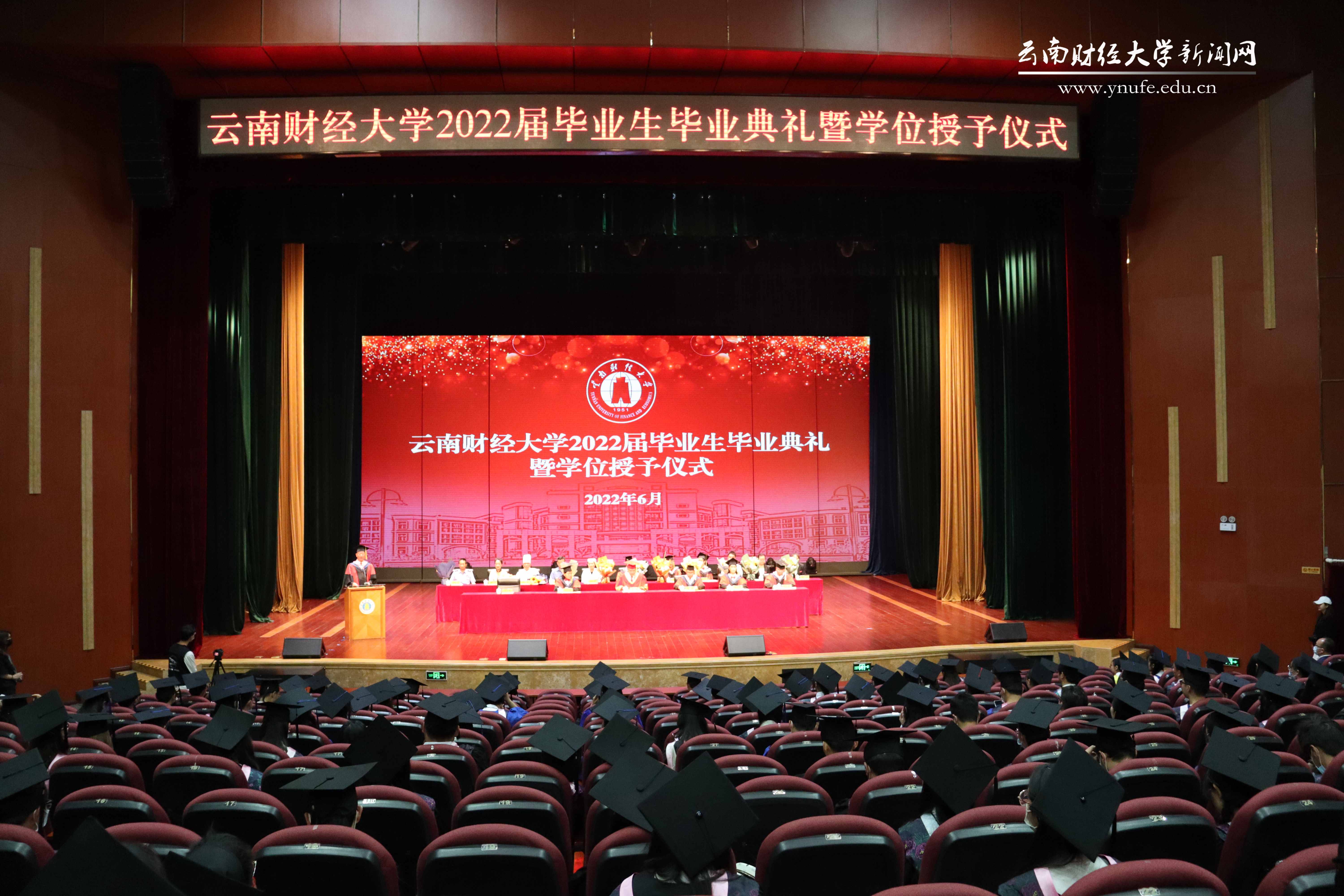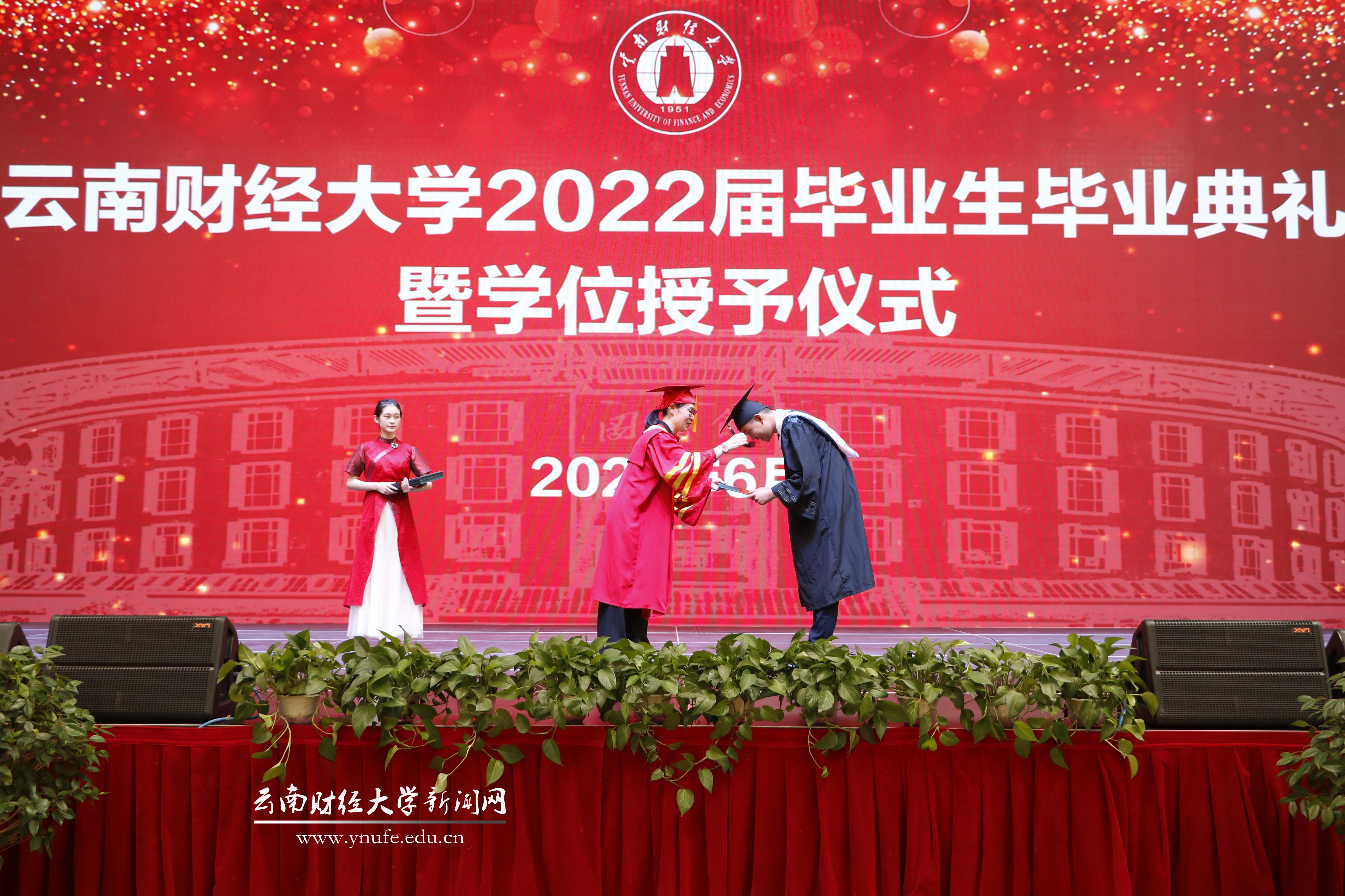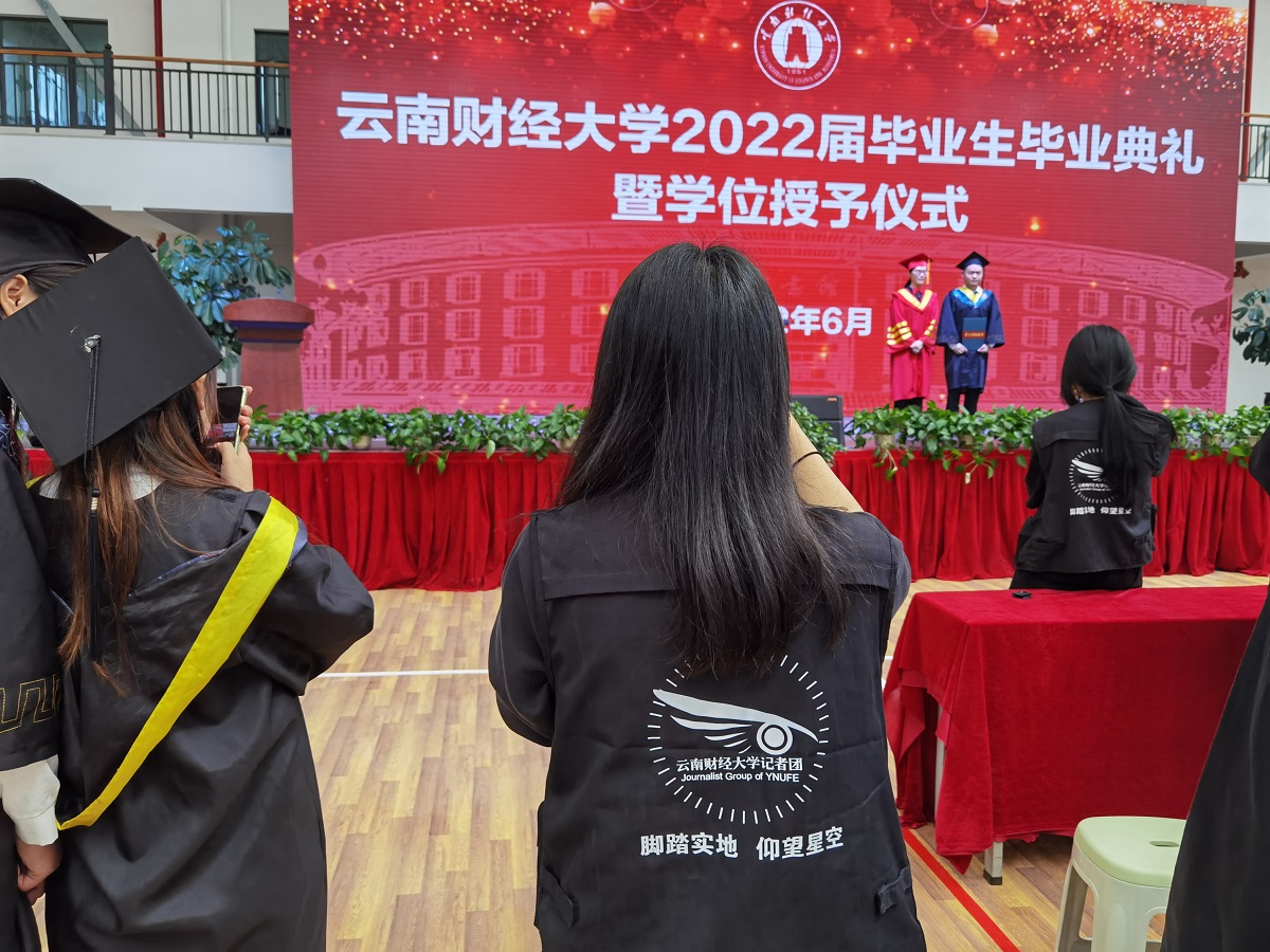 “谨遵师长教诲,铭记母校嘱托,秉承云财校训,弘扬云财精神,立志民族复兴,勇担时代重任,报效祖国,服务人民,奋进新征程,建功新时代!”此次毕业典礼首次安排了宣读毕业誓词的环节,毕业生代表们在领誓人的带领下,面对校旗以铿锵有力的语调齐声宣读毕业誓词。