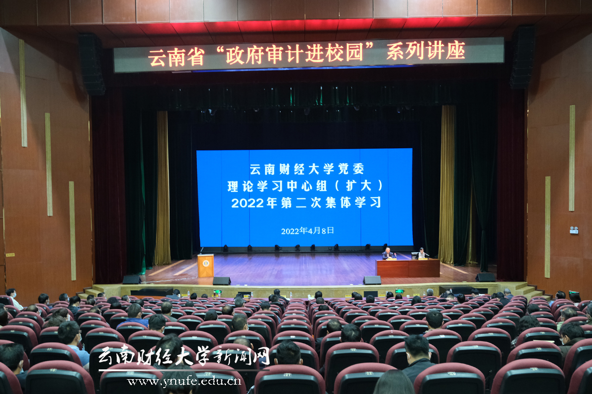 4月8日下午,学校党委理论学习中心组2022年第二次集体(扩大)学习在北院汇文礼堂举行。中共云南省委审计委员会办公室主任,云南省审计厅党组书记、厅长谢健为师生作专题辅导,校党委书记王建颖主持学习。此次专题学习也是云南省“政府审计进校园”系列讲座的第一讲。