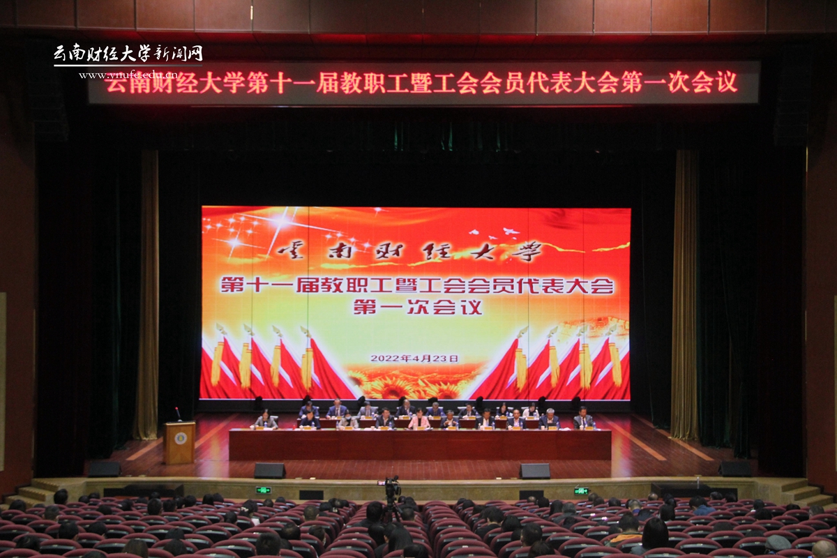 4月23日,beat365英国官方网站第十一届教职工暨工会会员代表大会第一次会议在汇文礼堂举行。云南省教育卫生科研工会主席李志恩代表上级工会组织到会祝贺,校党委书记王建颖出席会议并讲话,校党委副书记、校长伏润民代表学校作工作报告,大会选举产生了学校工会第十一届委员会和经费审查委员会。校党委副书记、工会主席、大会执行主席谢昌浩主持会议。