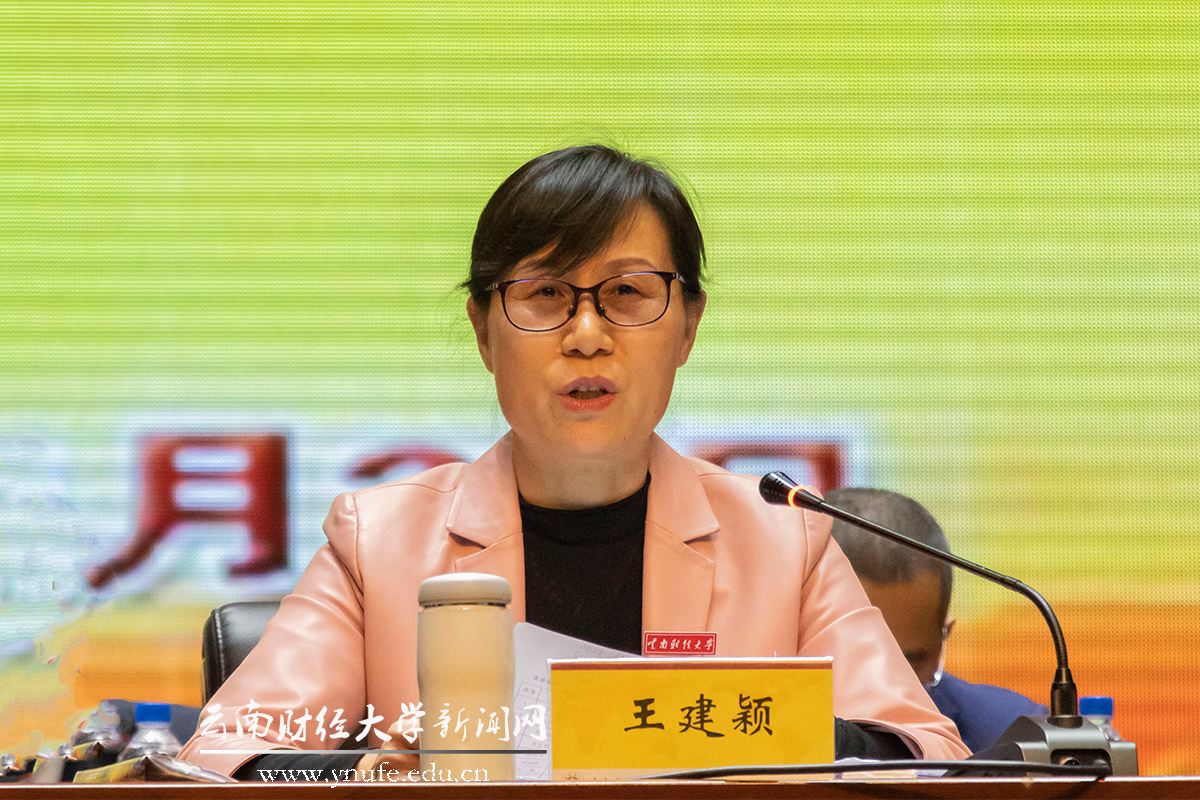 王建颖就贯彻落实此次会议精神提出八点要求:一是加强政治引领,履行好立德树人神圣使命。“大学之道,在明明德”,对于学生的培养,“德”是第一位的。二是强化政策引领,实施人才战略。要加强对教学科研一线人才的培养和引进,严格选才育才、留才用才。三是弘扬大学文化,推进“三风”建设。校风教风学风是大学文化的重要体现,广大师生要认真践行“求实创新”的校风,铭记“好学笃行,厚德致远”的校训,弘扬“自强不息,敢为人先”的云财精神。四是提升办学质量,推进一流学科建设。要优化教学资源配置,全面提升教育教学水平和教育国际化水平。五是涵养师生情怀,提升办学治校能力。要综合提升办学治校能力,对师生提出的问题和建议要积极回应、及时整改,给广大师生满意的答复。六是强化担当作为,推进作风革命效能建设。党员干部要做表率、有担当,真抓实干,提高效率意识。七是坚持科学精准,统筹做好疫情防控和各项重点工作。要坚决克服麻痹思想和侥幸心理、松劲心态、厌战情绪,做好打持久战的准备;学校的教职员工要带头遵守上级和学校疫情防控的相关要求,要以学生为本,加强风险点的管控,切实做好学生的各项教育管理服务工作。八是充分发挥教(工)代会在学校改革发展中的重要作用。教(工)代会是教职工参与学校民主决策、民主管理、民主监督的重要途径,新一届教(工)代会委员会和经费审查委员会要秉承好传统,汇集教职工智慧,体现教职工意志,切实把师生的智慧和力量引导到认同学校发展理念、推动学校改革发展上来。