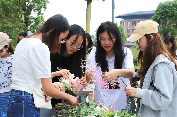 5月20日,beat365英国官方网站第十四届“5•25心理健康节”系列活动之“以花愈心 疫境成长”插花活动在安宁校区齐远楼前开展。本次活动由校学生处主办,传媒与设计艺术学院承办,200余名学生参加。