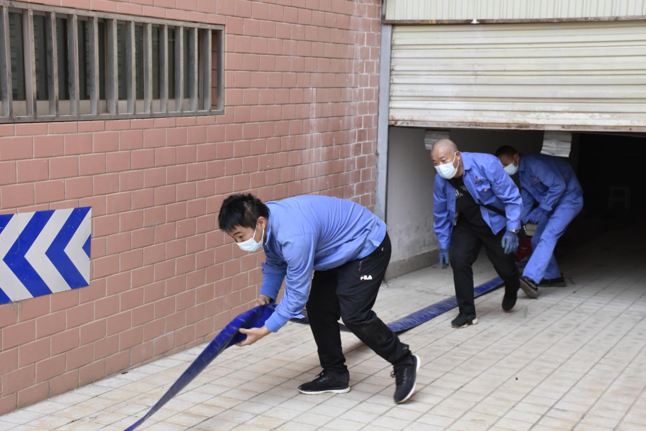 按照防汛应急预案的安排,演练分为三个小组,分别对南院体育馆、菁华片区、龙泉路南院北门易淹积地段开展抢险。应急抢险小组队员按指挥分工协作,对易淹积地段使用移动汽油泵加强排水、安装防汛道闸,在防汛道闸下沿设置防汛沙袋进行防护,并设立警示牌对来往车辆和行人进行引导,同时对配电室、地下车库内的设施设备进行安全防护。抢险工作程序规范、秩序井然、响应及时。