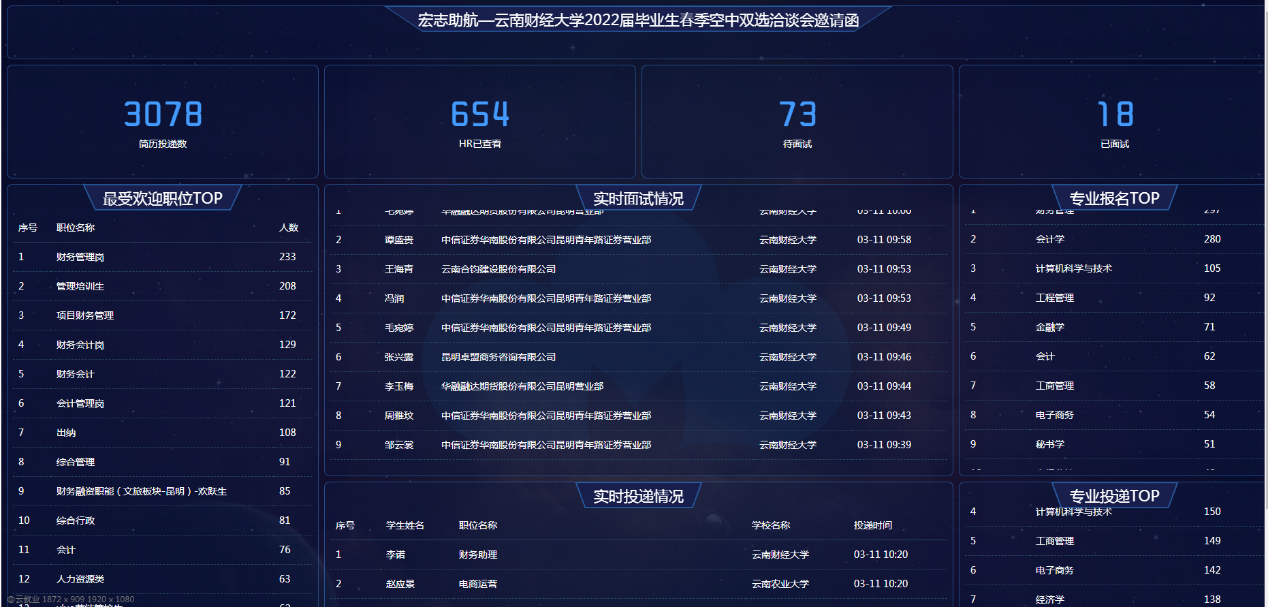 洽谈会共吸引113家用人单位参会,累计提供500余个就业岗位,招聘需求逾6900人。据统计,近1900名毕业生现场参与,共投递简历3000余份,线上浏览总量达64000余次。此次双选洽谈会由学校招生与职业发展中心组织实施。