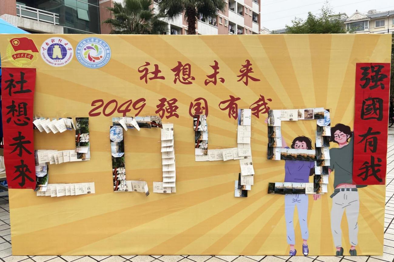此次社团博览会特别设置了“社想未来——对话2049”互动环节,参与的同学在社团摊位或者社团部摆点处领取一张明信片,可以在明信片中写下对社团的祝福和期盼,以“慢邮”的形式对话未来社团。