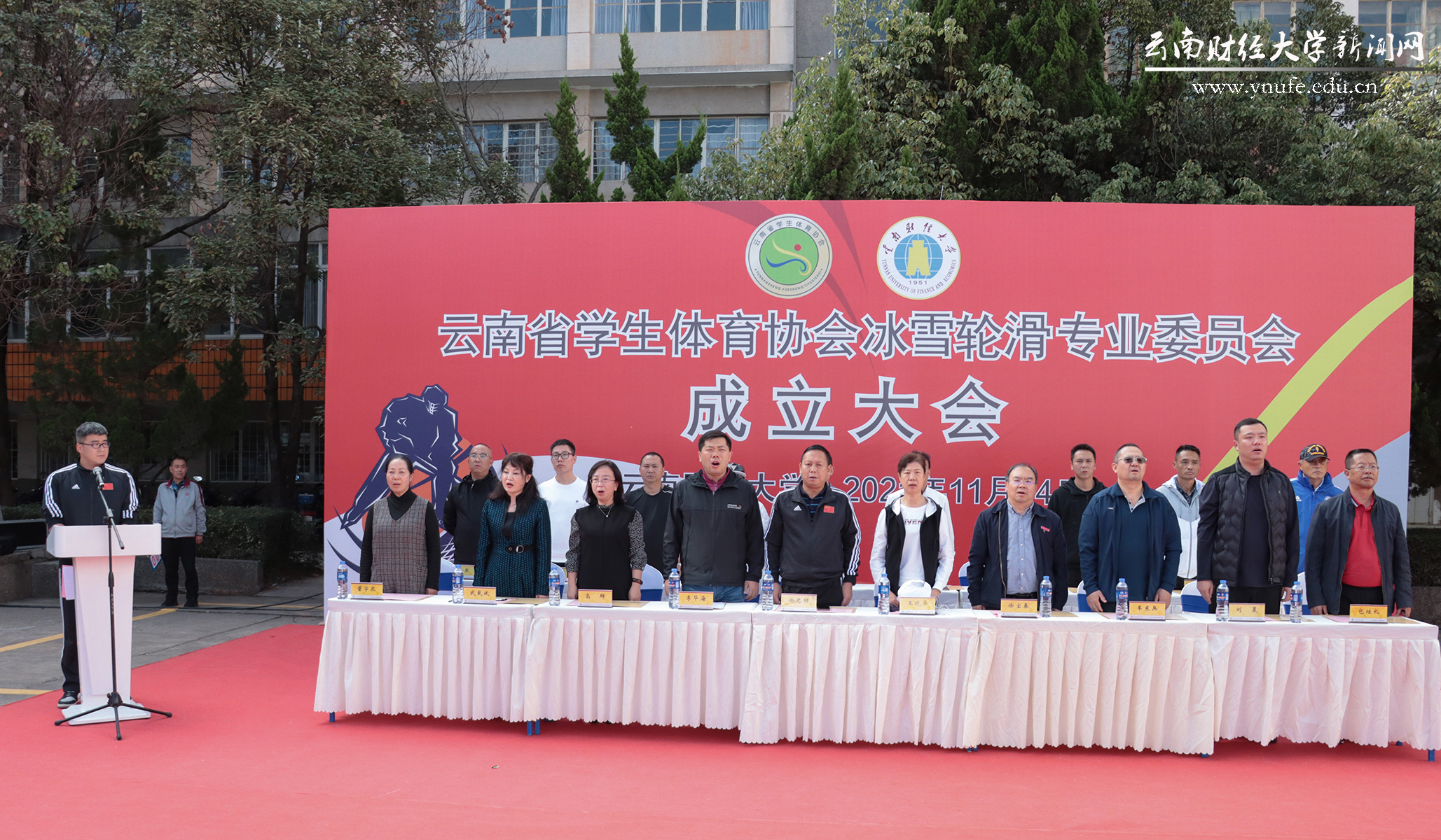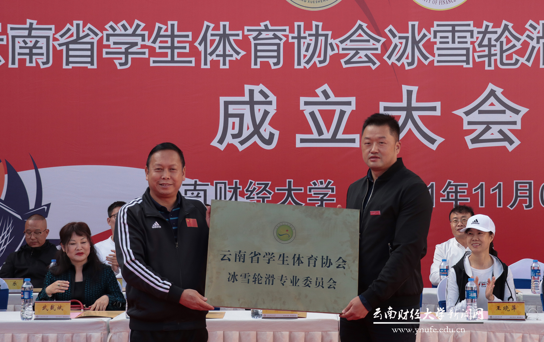 11月4日下午,云南省学生体育协会冰雪轮滑专业委员会(以下简称“专委会”)成立大会在beat365举行。校党委委员、副校长王晓萍代表学校致辞,云南省教育厅体卫艺处处长徐忠祥分别为专委会和专委会主任朱海营授牌匾并颁发聘书,省教育厅体卫艺处副处长李华海宣读专委会成立的决定。