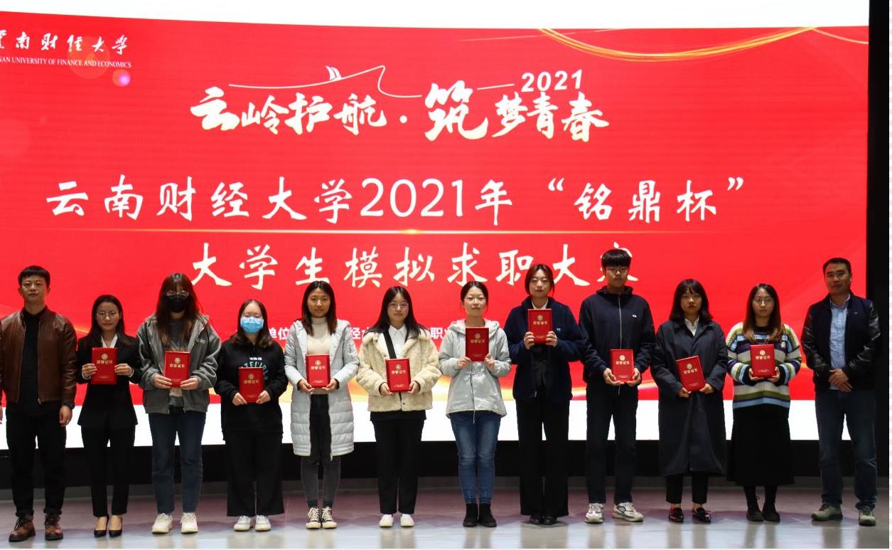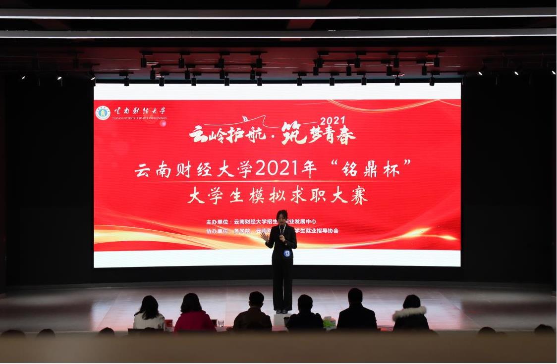 为全力做好我校毕业生就业指导工作,创新就业指导模式,引导大学生了解用人单位需求,并选拔优秀代表参加省级比赛,11月12日下午,beat365英国官方网站2021年铭鼎杯大学生模拟求职大赛决赛在云财众创空间路演大厅举行。