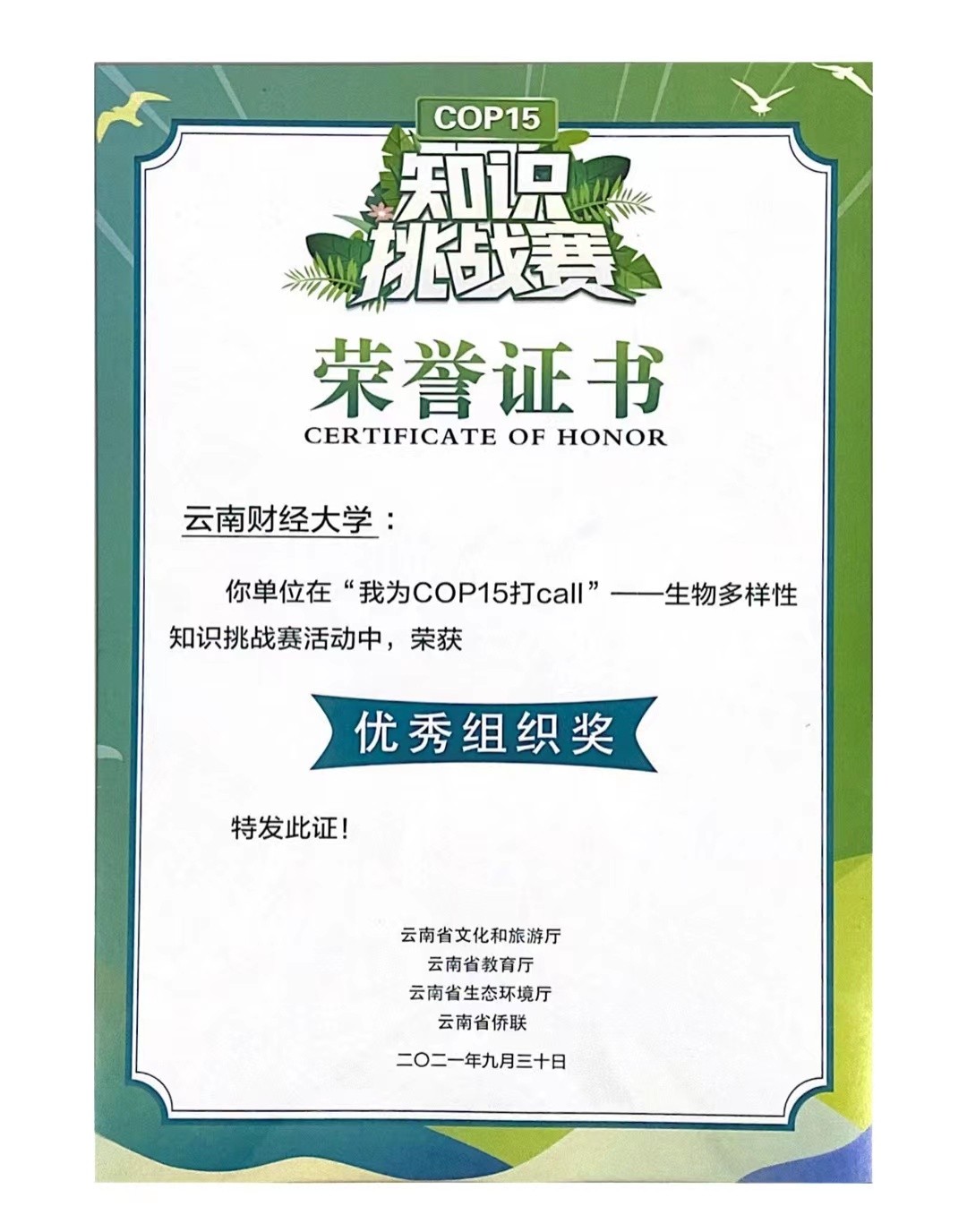 通过参加此次比赛,同学们更加了解了生物多样性的有关知识,进一步强化了同学们生态保护的意识,为COP15的召开营造了良好的氛围,贡献了青春力量,积极推动云财青年将以更好的状态为COP15第二阶段助力。