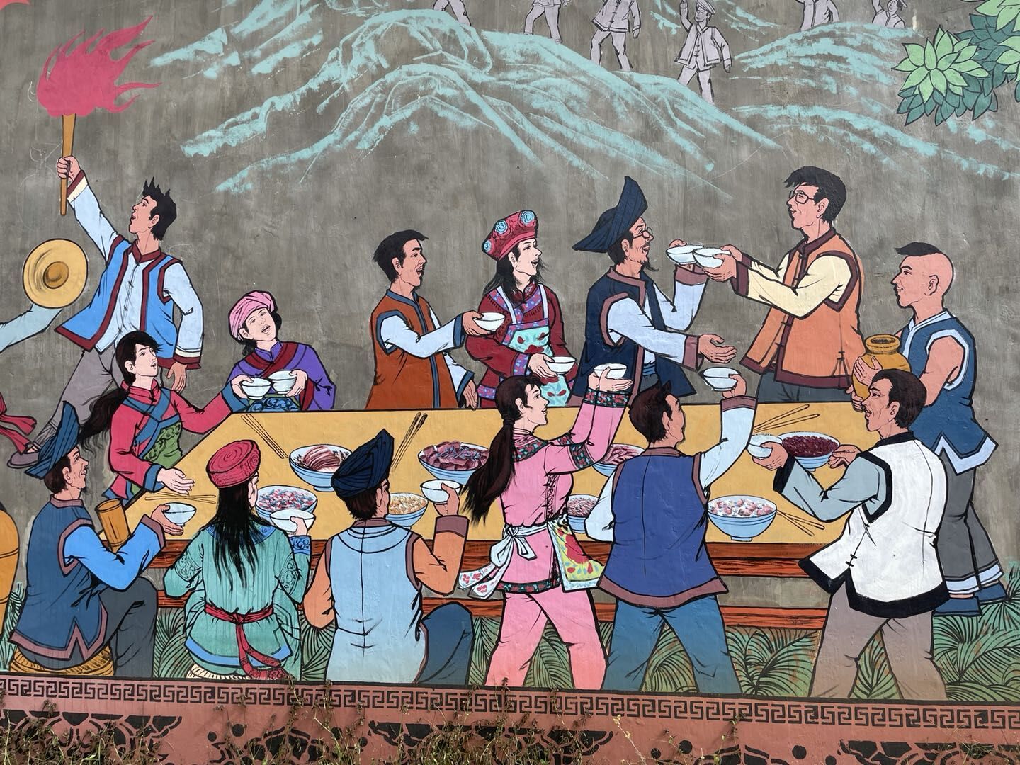 突出“乡愁”蕴意、富有文化内涵、展示人民群众美好愿望的村民房屋壁画,让人眼前一亮;干净整齐、鸟语花香的村落,给留学生们留下了深刻印象。来自马达加斯加的史蒂芬看到壁画说道:“这些画作向我们展示了村落的少数民族文化和村庄的历史变迁过程,对于我们更加深入地学习了解中国传统文化有很大的帮助。”