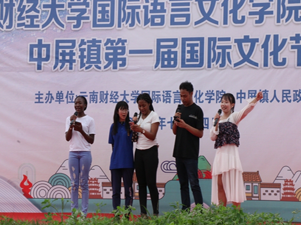 在“国际文化节”开幕式上,留学生和中国学生一起合唱了英文歌曲《We Are The World 》,热情的歌声感染了全场,大家纷纷举起手,随着音乐律动起来。老乡们表示,非常欢迎外国留学生到中屏镇走访调研,也感谢同学们带来的精彩的节目。