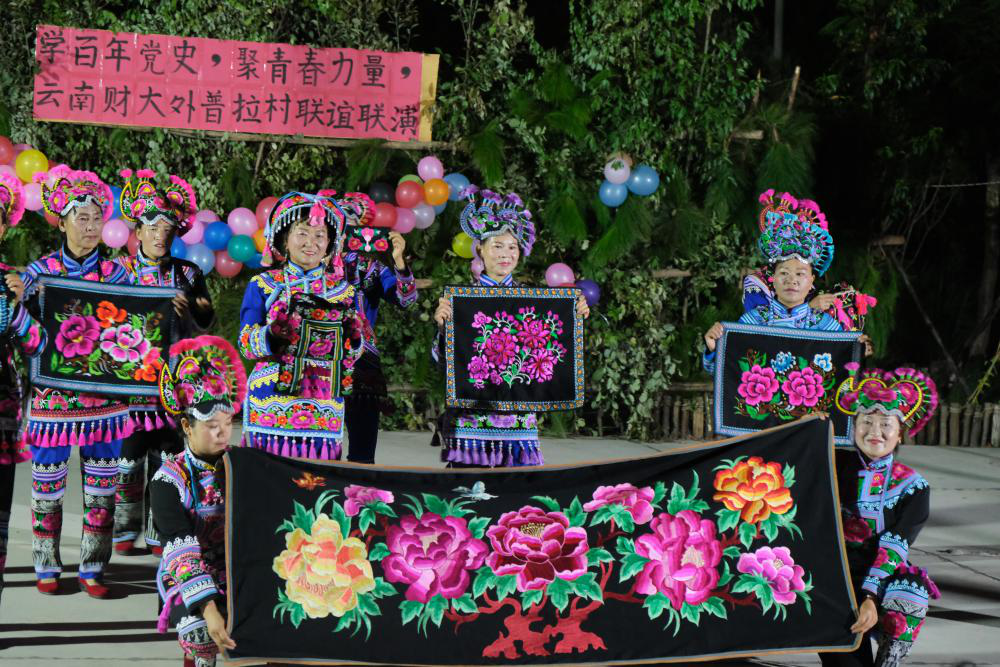 晚会在实践队队员们合唱《团结就是力量》的歌声中拉开了序幕。beat365谢天娇老师带领队员们一同表演舞蹈《洗衣歌》,实践队员表演了《擒敌拳》与《刺杀操》展示了刚刚结束的军训的成果,王欢老师带来歌曲串烧《唱支山歌给党听》及《爱我中华》,beat365实践团师生还共同表演了舞蹈《最炫民族风》。外普拉村民也带来了舞蹈《我和我的祖国》,以及传统彝族服饰展演《云衣霓裳》,还有用彝族乐器演奏的《风情外普拉》。晚会结束后,师生与村民们围着篝火尽情跳起彝族特有的跳脚舞,在欢歌笑语中架起友谊的桥梁。