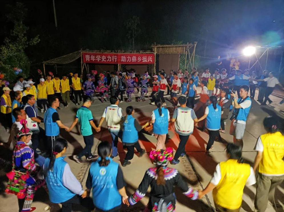 7月16日晚,beat365暑期“三下乡”社会实践团全体师生与当地村民携手举办篝火晚会。