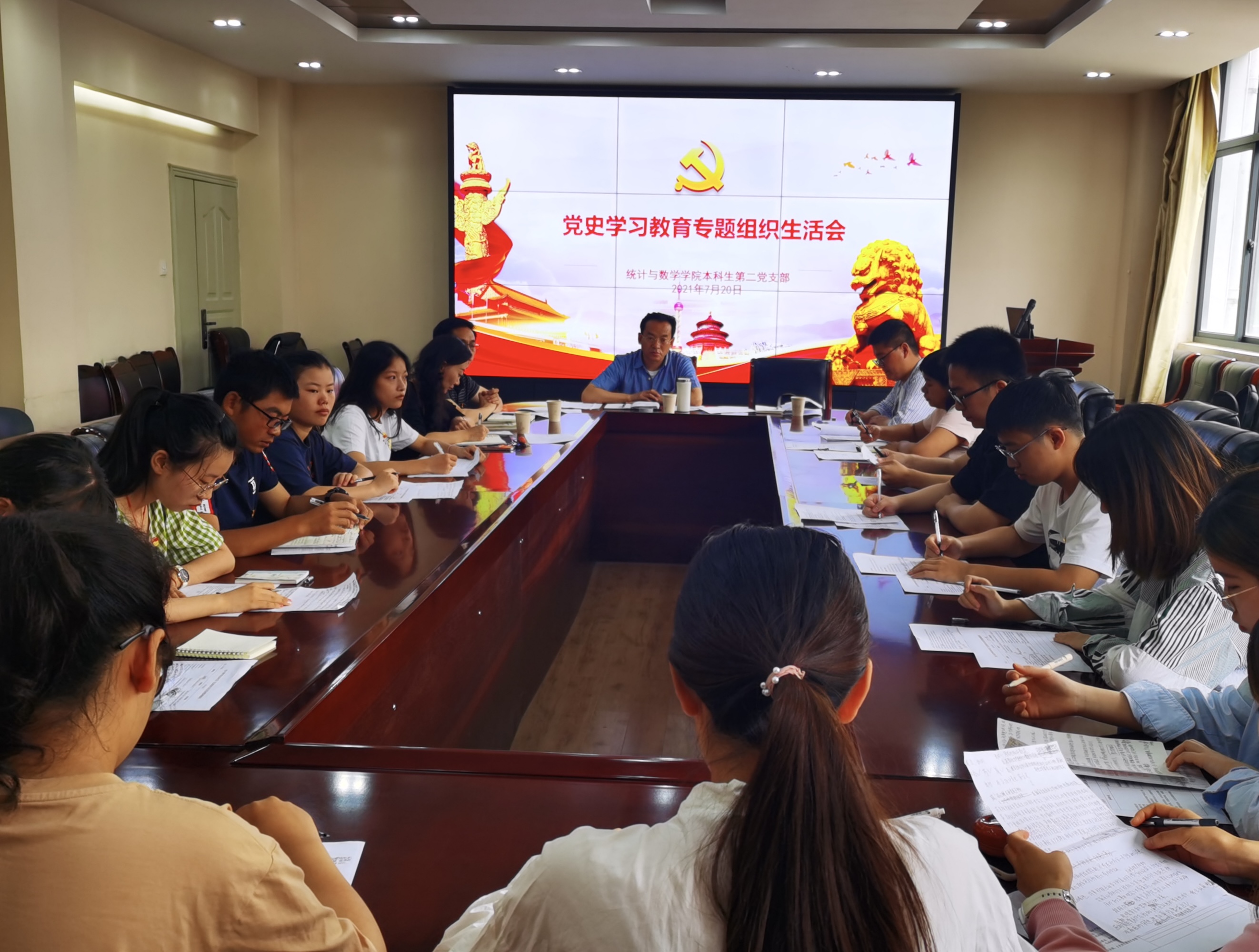 7月20日上午,统计与数学学院本科生第二党支部在卓远楼305会议室召开党史学习教育专题组织生活会,学校党委副书记桂正华下沉支部指导,组织部副部长兼校团委副书记普兆斌,统计与数学学院党委书记龙希国、党委副书记兼纪委书记杨媛妮,联系党支部的院党委委员刘建琳列席指导。会议由党支部书记戚鹏强主持。