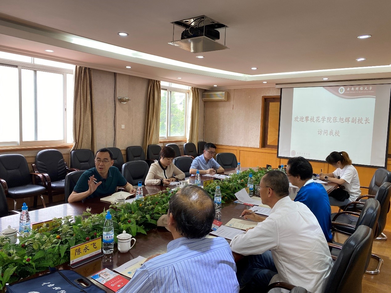 7月22日下午,四川攀枝花学院副校长张旭辉、经管学院院长杨勇攀、规划处副处长李博,科研处副处长尹茜一行到访beat365。学校研究生处教学督导组组长兰天,经济学院党委书记陈永飞,城市与环境学院院长刘春学,国际工商学院院长王荣党、副院长尹豪等在国际工商学院会议室与来宾举行会谈,就教育合作等多个事项进行了深入有效的沟通。会后,副校长王敏、研究生处处长刘富华与攀枝花学院一行进行了交流。