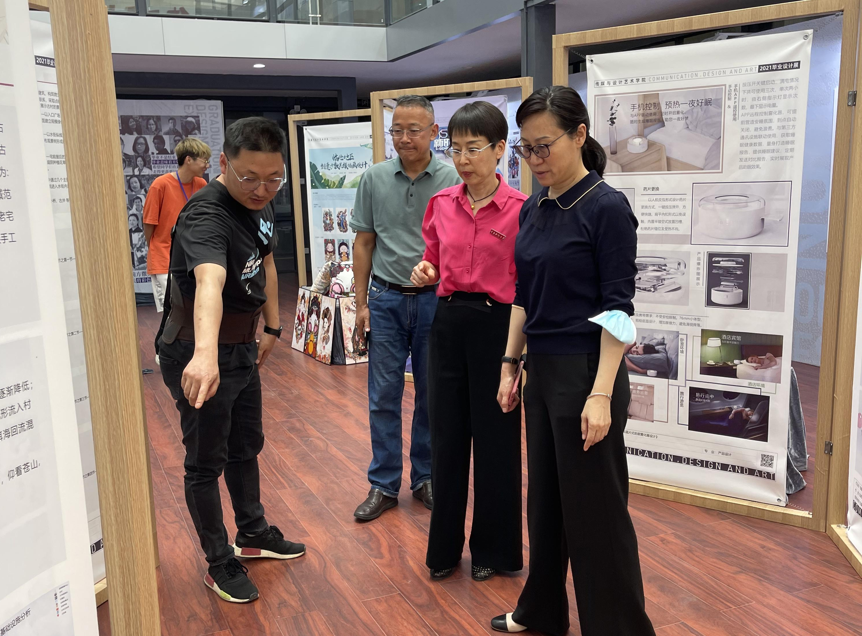 学校党委书记王建颖参观了毕业设计作品展,听取了学院有关负责人关于展览策划、设计构想、表现思路和特色亮点等情况的汇报,深入了解了学院指导教师配备、学生毕业设计创作、文创作品培育等情况。她强调,作品展在展现学术性的同时,需进一步凸显美育功能,在立德树人、以美育人方面不断作出新的贡献,更好服务学校人才培养中心工作和校园文化建设。