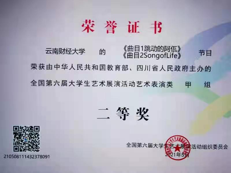 近日,由教育部组织的全国第六届大学生艺术展演活动在成都市落下帷幕,beat365大学生合唱团报送的参赛曲目《跳动的阿佤》荣获表演类甲组二等奖。这是beat365连续四次荣获全国大学生艺术展演活动奖项。