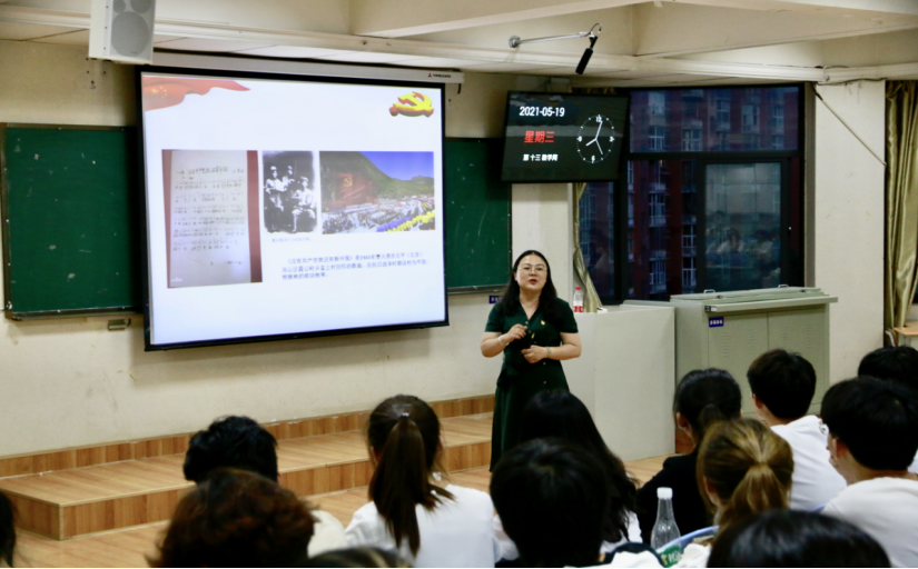 团课前,全体人员合唱了《没有共产党就没有新中国》。团课结束,曾蕾带领大家齐声背诵毛泽东同志的《沁园春·雪》,以诗词感受伟人风采,以诗词牢记党的辉煌历程。
