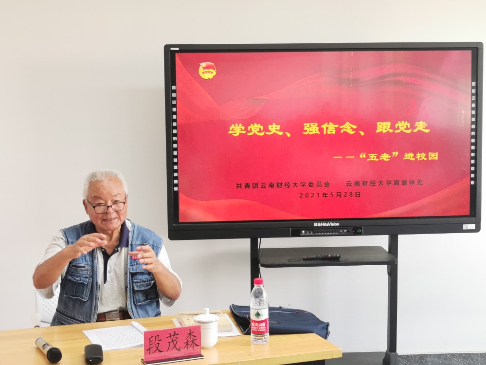 为扎实推进党史学习教育走深走实,充分发挥“五老”作为时代实践者、亲历者、开创者、见证者、建设者的优势及模范作用,让爱党爱国情怀根植云财青年心中,让红色基因、革命薪火代代相传,5月28日下午,校团委、离退休处继续开展“学党史、强信念、跟党走”之“五老”进校园主题系列活动。