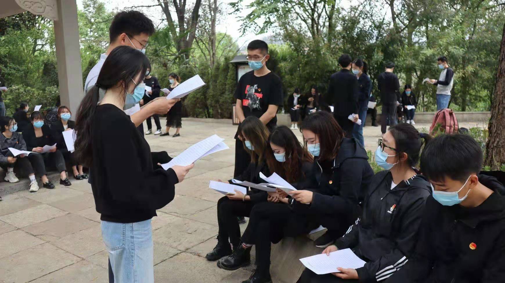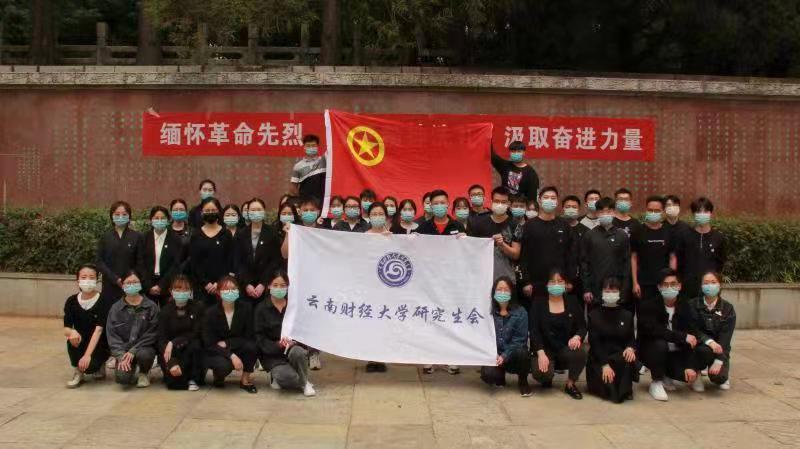 同学们来到烈士墓前,肃立默哀,敬献鲜花。全体学生党员到“党性教育基地”,面对鲜红的党旗,一起高举右手重温入党誓词,表达了继承先烈遗志、艰苦奋斗、自强不息的决心。随后,同学们通过分组讨论、集体分享的方式认真学习了王复生、王德三等革命烈士事迹和云南党史知识。