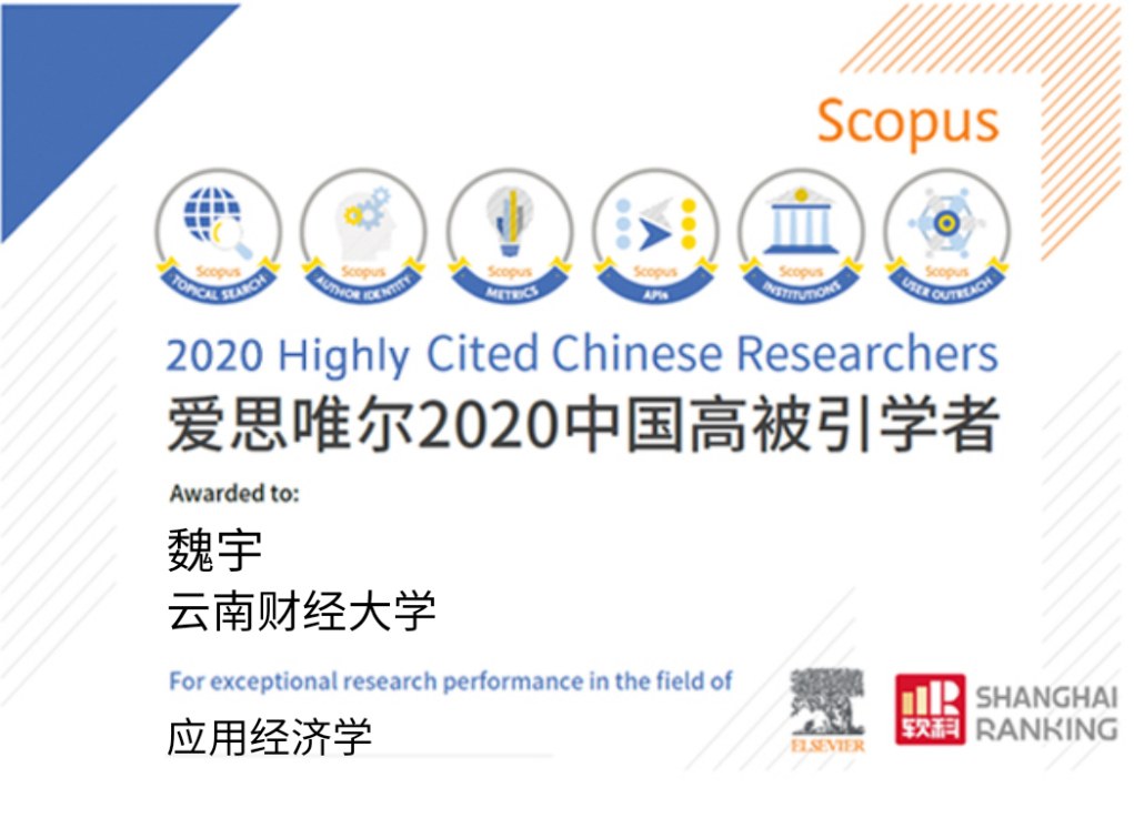 4月22日,全球性信息分析公司爱思唯尔(Elsevier)正式发布了2020年中国高被引学者(Highly Cited Chinese Researchers)榜单,beat365金融学院魏宇教授入选(应用经济学学科)。此次入选应用经济学学科的高被引学者共50名,魏宇教授也是beat365历史上首次入选爱思唯尔“中国高被引学者”(应用经济学学科)的教师。