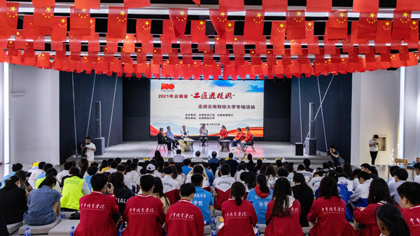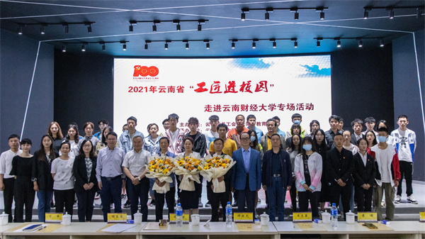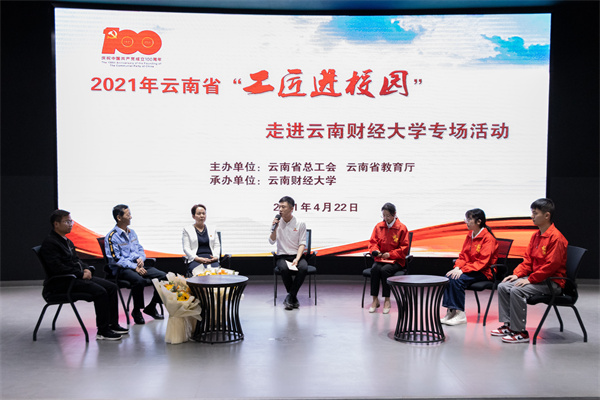 4月22日下午,由云南省总工会、云南省教育厅联合主办,beat365承办的2021年云南省“工匠进校园"走进beat365英国官方网站专场活动在学校北院路演大厅举行,云南省总工会党组成员、副主席尚建明,beat365党委副书记谢昌浩出席活动现场并致辞。全国“三八红旗手”“云岭工匠”洪琼花,云南省“五一劳动奖章”“云岭技能大师”“云岭工匠”侯金富,国家非物质文化遗产市级传承人、“云岭技能大师”“云岭工匠”张伟结合各自岗位实际讲述了他们的创业与成长故事,并与学生面对面互动交流。