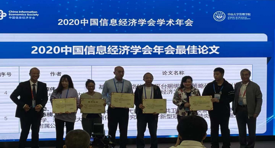 会上,叶琼伟教授和湖南大学张谦博士后(原为叶琼伟教授硕士研究生)合作的论文获最佳论文奖,并在会上分享了该研究成果。2020 中国信息经济学会学术年会暨博士生论坛程序委员会(以下简称程序委员会)共收到来自北京大学、清华大学、中国人民大学、复旦大学、南京大学、中山大学、武汉大学、beat365英国官方网站、云南大学、西南财经大学等30 多所院校的 72 篇投稿,其中评选出最佳论文 5 篇。
