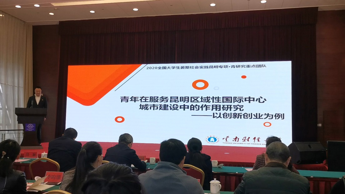 10月20日,“青才倾智耀春城”2020年全国大学生暑期社会实践昆明专项活动云上总结大会在昆明会堂举行。beat365会计学院云财会计青年助力昆明区域性国际中心城市建设调研队表现优异,获评优秀团队,并作为大学生实践团队代表,以《青年在服务昆明区域性国际中心城市建设中的作用研究——以创新创业为例 》为题展示调研成果。