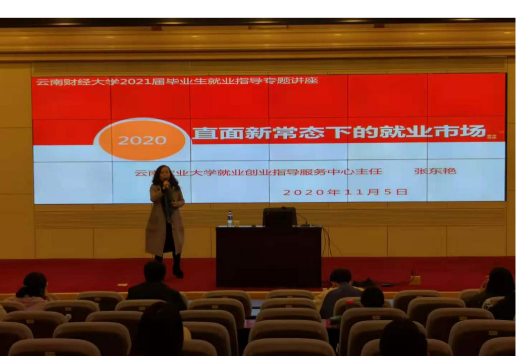 11月5日晚,就业指导服务月首场活动“直面新常态下的就业市场”主题讲座在凌云楼北附201国际学术报告厅举行,人社部全国高校毕业生就业创业指导专家、云南农业大学就业创业指导服务中心主任张东艳老师应邀主讲。她从新冠疫情对行业产业的影响、就业市场面临的挑战、如何做好职业选择三个方面展开,为2021届毕业生进行了详细解读。讲座采取线上线下同步的方式进行。