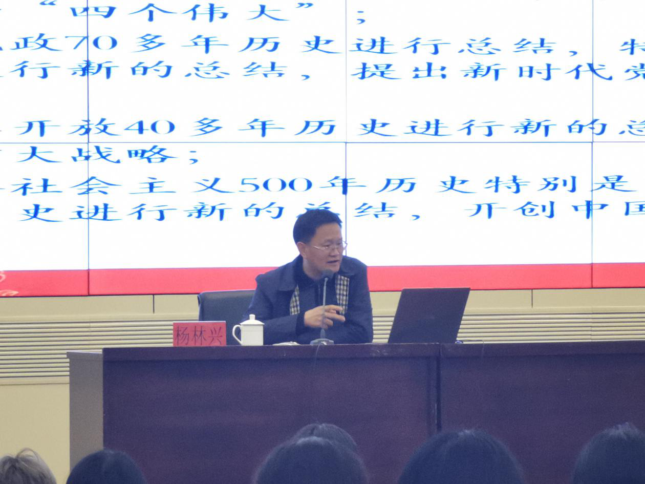 11月9日晚上,beat365英国官方网站青年马克思主义者培养工程暨第十五期团校培训班第二讲在凌云楼北附201室举行,历史学博士、中共云南省委党史研究室副主任、云南中共党史学会常务副会长、云南省中国特色社会主义理论体系研究中心特约研究员杨林兴教授主讲。第十五期团校培训班的全体学员和团干部参加学习。