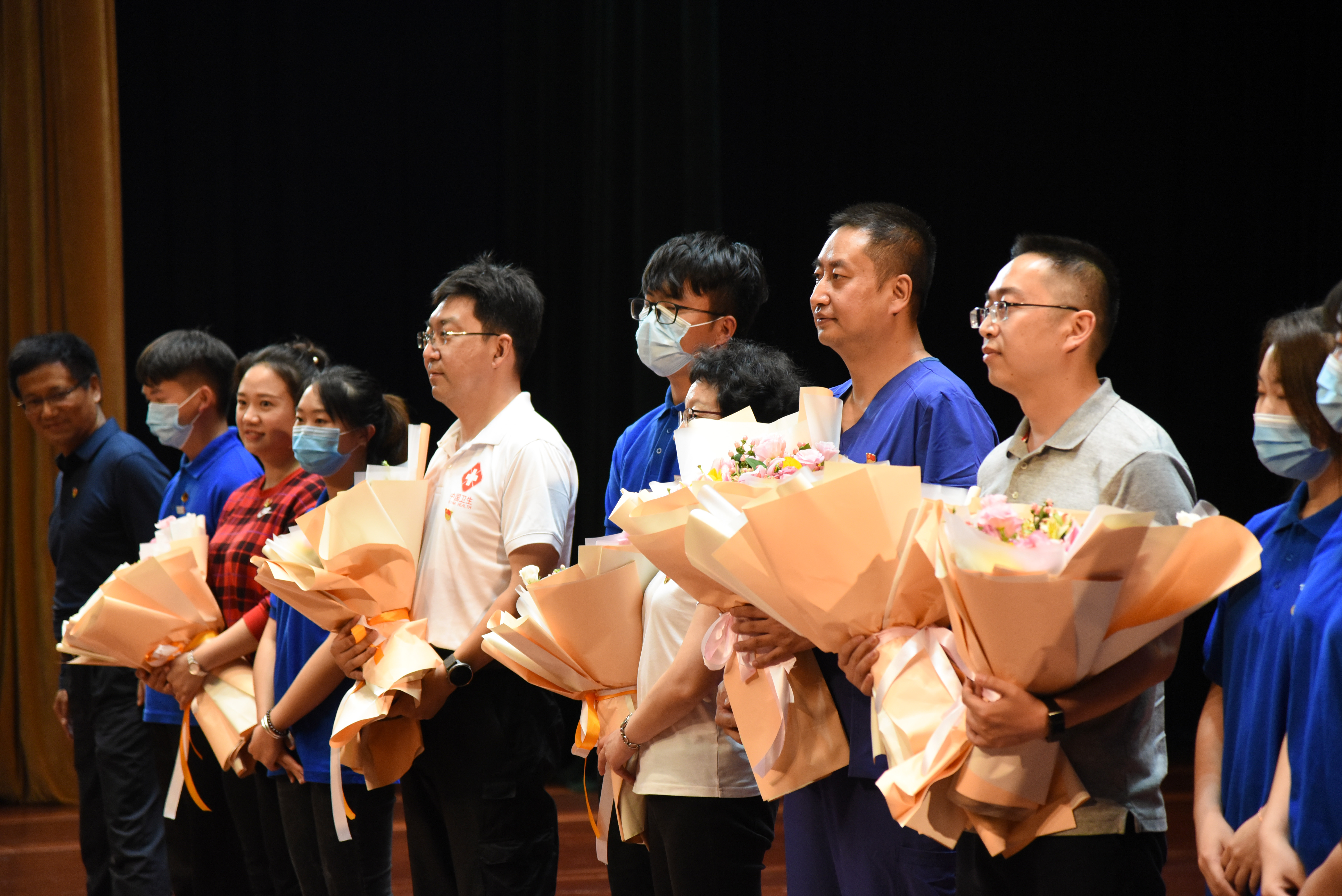 报告会前,学生代表向报告团成员献花,用鲜花和掌声向援鄂抗疫的英雄们表示最衷心的感谢和最崇高的敬意。