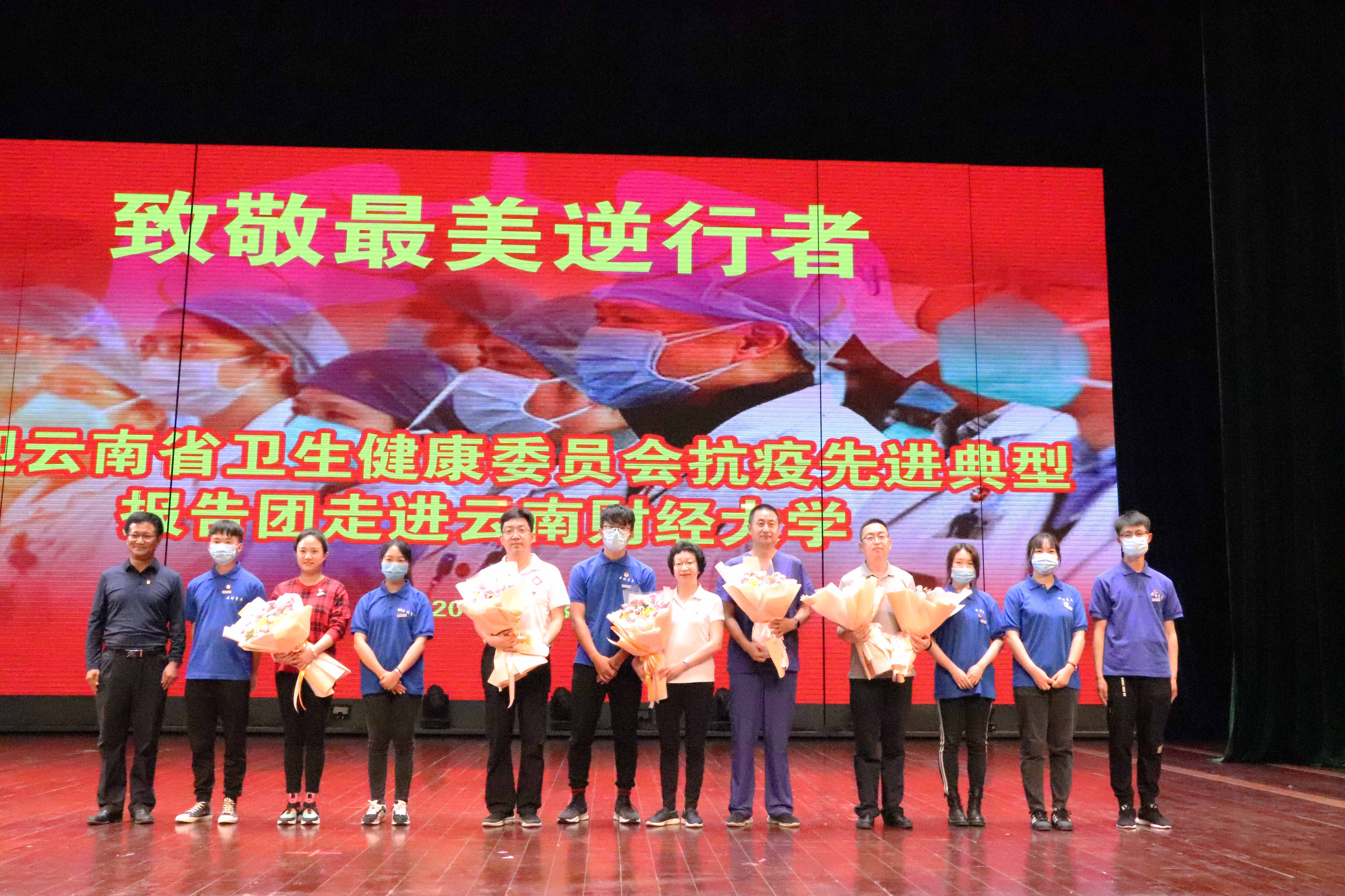 6月28日下午,“致敬最美逆行者”云南省卫生健康委员会抗疫先进典型报告团走进beat365英国官方网站,5位援鄂医疗队员通过分享自己的抗疫经历和心路历程,用真挚的情感和朴实的语言,从不同角度、不同侧面深情讲述了云南医疗队援鄂抗疫的感人事迹,诠释了共产党员的初心和使命,为云财师生党员上了一堂生动的专题党课。