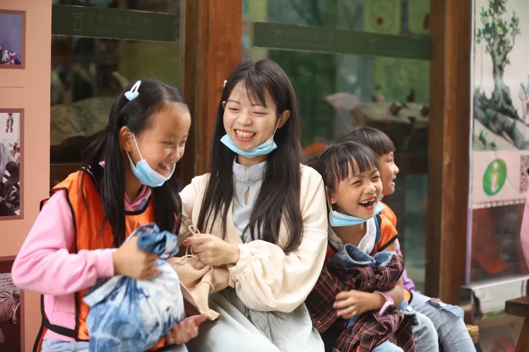 在互动游戏中,三下乡队员们耐心热情地指导小朋友们,向小朋友和家长们宣传控烟小知识和文明养犬的理念。