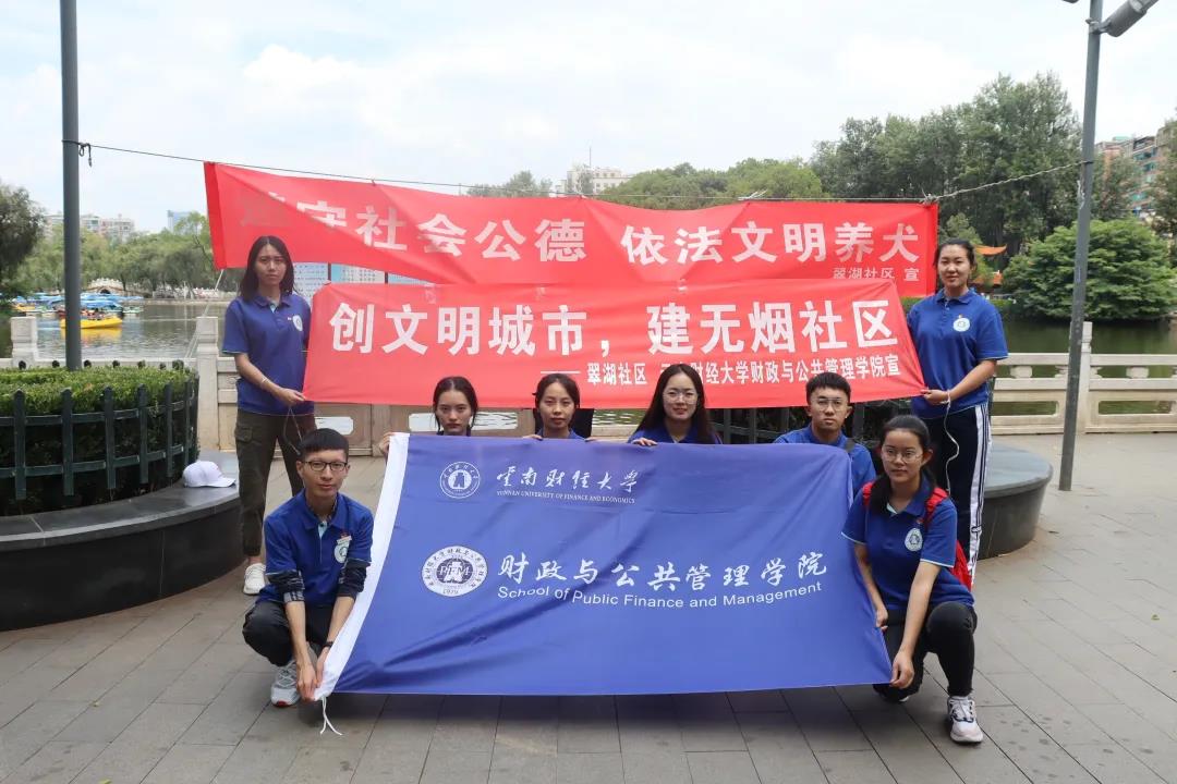 8月28日,财政与公共管理学院三下乡团队在翠湖公园“九曲桥”开展“无烟社区,文明养犬”主题社会实践活动, 经过前期与翠湖社区的交流,队员们了解到,当前,社区在推进文明养犬方面需进行更广泛地宣传普及。因此,实践队员将推进文明养犬与无烟社区建设相结合,更好地推进文明城市。
