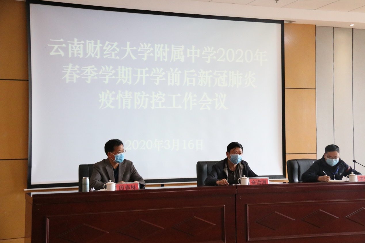 3月16日上午,全洪涛出席附中疫情防控工作大会,对附中的疫情防控工作给予了充分肯定,并对开学前后的疫情防控提出三点要求:一是要做好开学前全体师生旅居情况和健康状况排查,实行风险等级分类管理,对返校复工复学人员进行严格审批;二是门卫管理要从严从紧,严格落实教育部“五个一律”要求;三是在做好防控工作的同时,要确保教学质量。为此,全洪涛提出,一是守好门,打好阻击战;二是要让全体师生员工投入到防控工作中来,打好总体战;三是要抓住契机培养学生的文明习惯,做好育人工作;四是要历练职工队伍,让全校教师经得住考验。