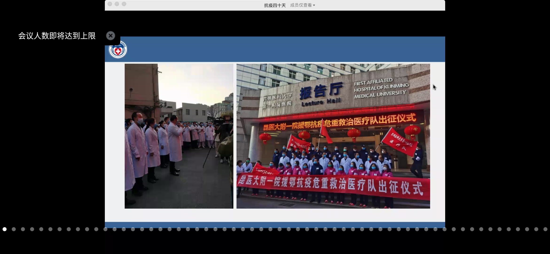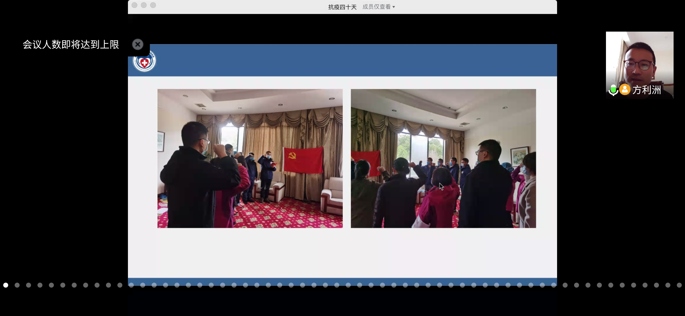 方利洲用序幕篇、出征篇、奋斗篇、花絮篇、凯旋篇五个篇章,向同学们重现抗疫40天的工作——在湖北的凌寒冬日,被密不透风的防护服裹得全身湿透;为了不影响工作,只能靠拼命甩头来避免护目镜起雾;为了节约防护服,每天穿着成人尿不湿上班;队伍中有一名护士因过度劳累而昏厥,倒下的时候还撞到桌子导致骨折……