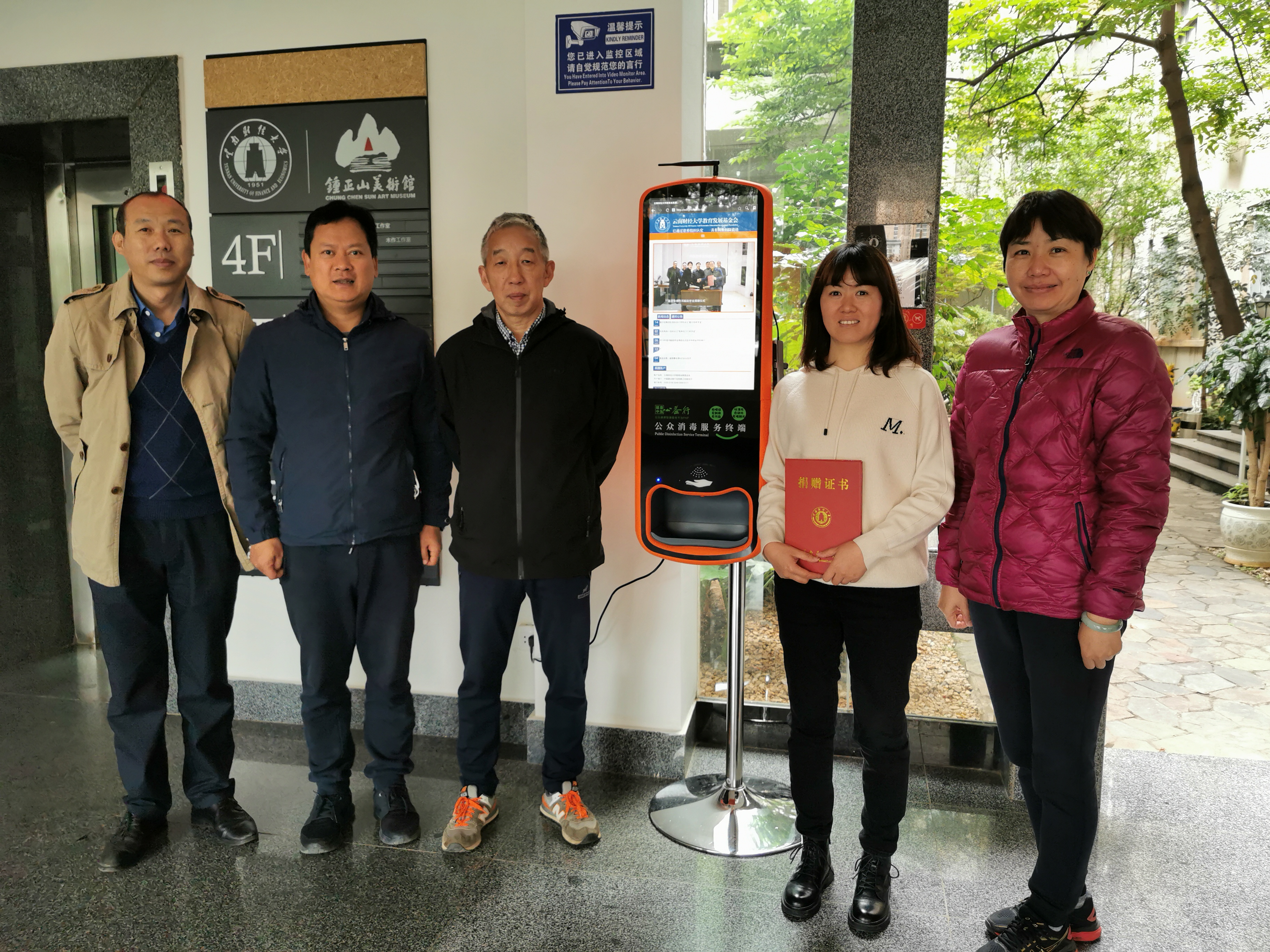 4月26日,李金仙校友为学校捐赠防疫物资,共三台手部消毒机及一箱消毒液,手部消毒机分别安装在锺正山美术馆、校医院及教工餐厅。