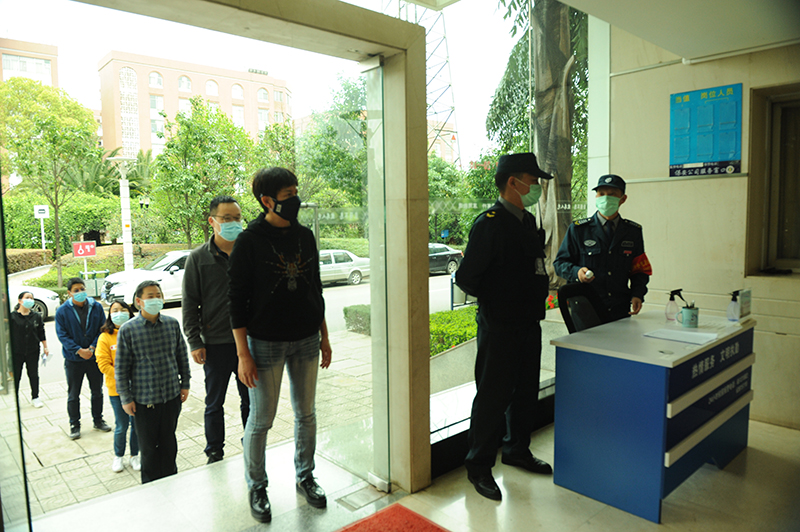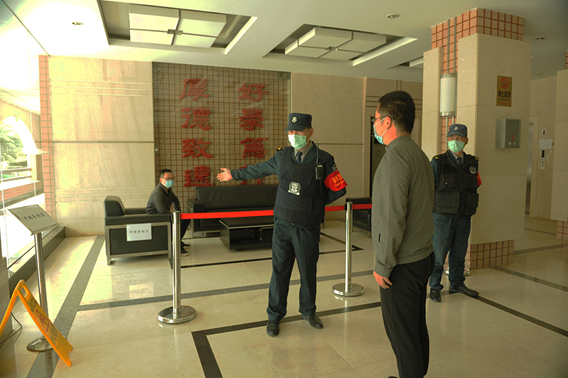 下午的疫情防控应急演练安排在致远楼门厅,对教职工体温监测、发热应急处置以及消杀操作等环节进行了全方位、全流程模拟。演练过程中,来自人事处、校工会、保卫处、后勤产业集团及相关职能部门的工作人员分工明确、动作规范,按照工作预案进入角色,应急演练有条不紊进行。